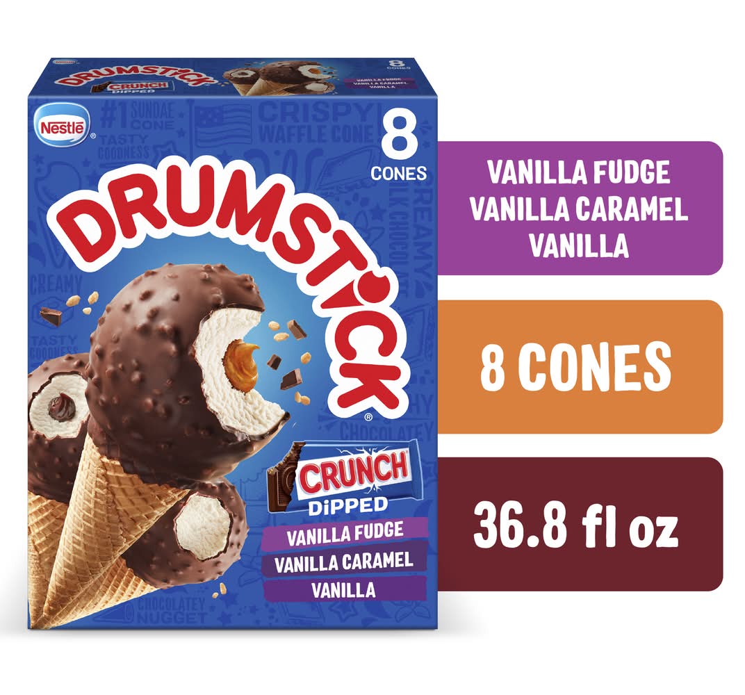 Drumstick Crunch Dipped Sundae Frozen Dairy Dessert Cones, Assorted (36.8 fl oz, 8 ct)