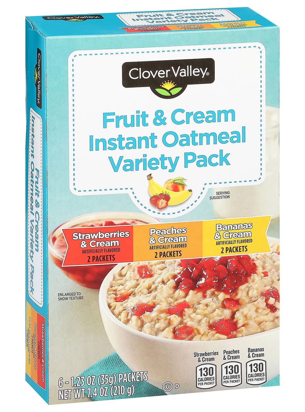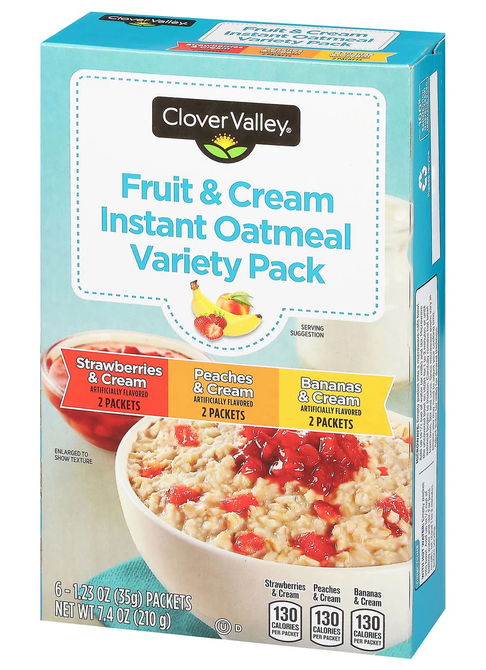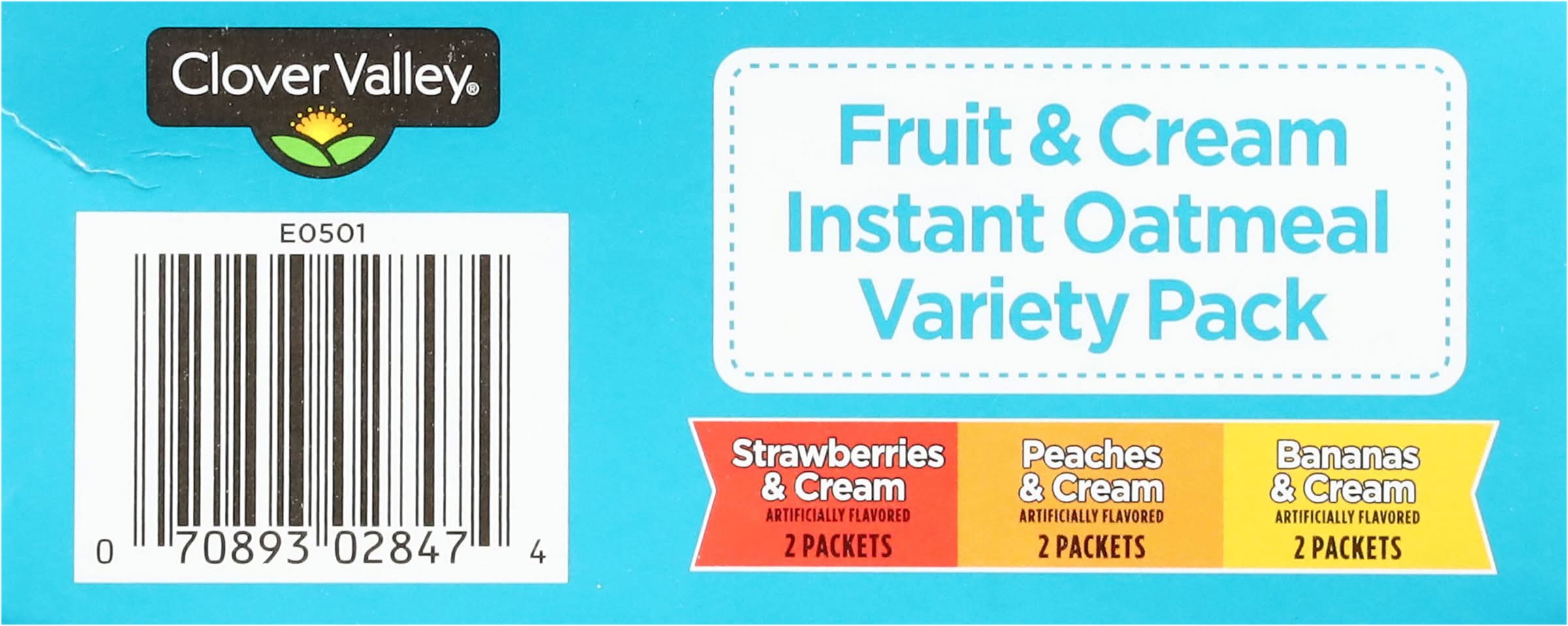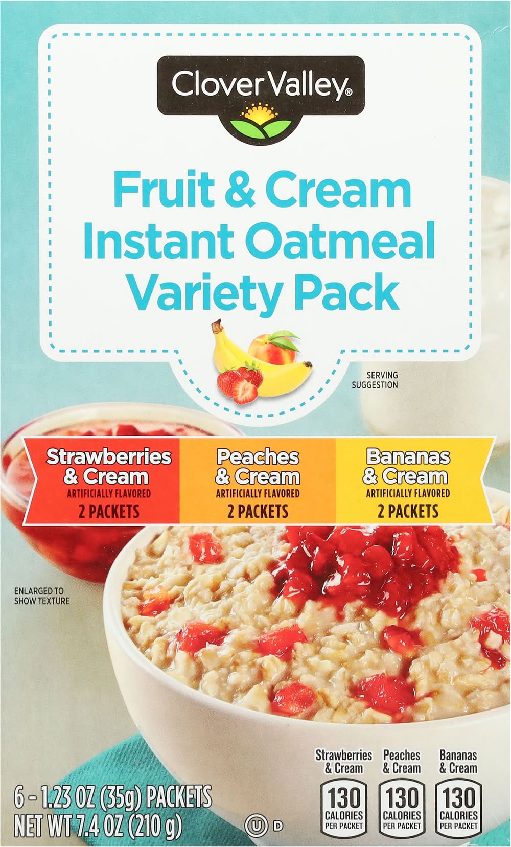 Clover Valley Fruit & Cream Instant Oatmeal Variety pack, Strawberries & Cream-Peaches & Cream-Bananas & Cream (6 x 1.23 oz)