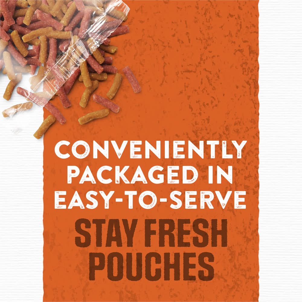 For your dog, every day is an adventure just waiting to happen, so it’s essential that they’re fueled with 100 percent complete and balanced soft dry dog food for adult dogs like Purina Moist and Meaty Dog Food Burger With Cheddar Cheese Flavor. Whether you feed them this moist dog food recipe as a meal, treat or as dog food toppers, your dog will be thrilled every time you pop open one of these Purina Moist and Meaty dog food pouches. Moist and Meaty dog food comes in a variety of dog-pleasing choices, so it is simple to go above and beyond for your dog. With its meaty beef dog food and cheddar taste flavor that will make them think it’s right off the grill and tender texture that’s easy to sink their teeth into, this soft dry dog food will get your dog’s tail wagging at any time of the day. Serve up the smiles with the soft and meaty texture of Purina Moist and Meaty Dog Food Burger With Cheddar Cheese Flavor. Size: 36 OZ