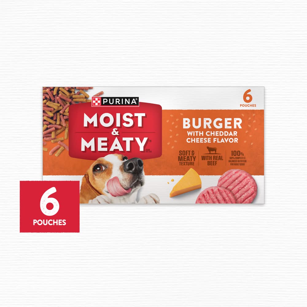 Purina Moist & Meaty Burger Dry Soft Dog Food, Cheddar Cheese (2.25 oz, 6 ct)