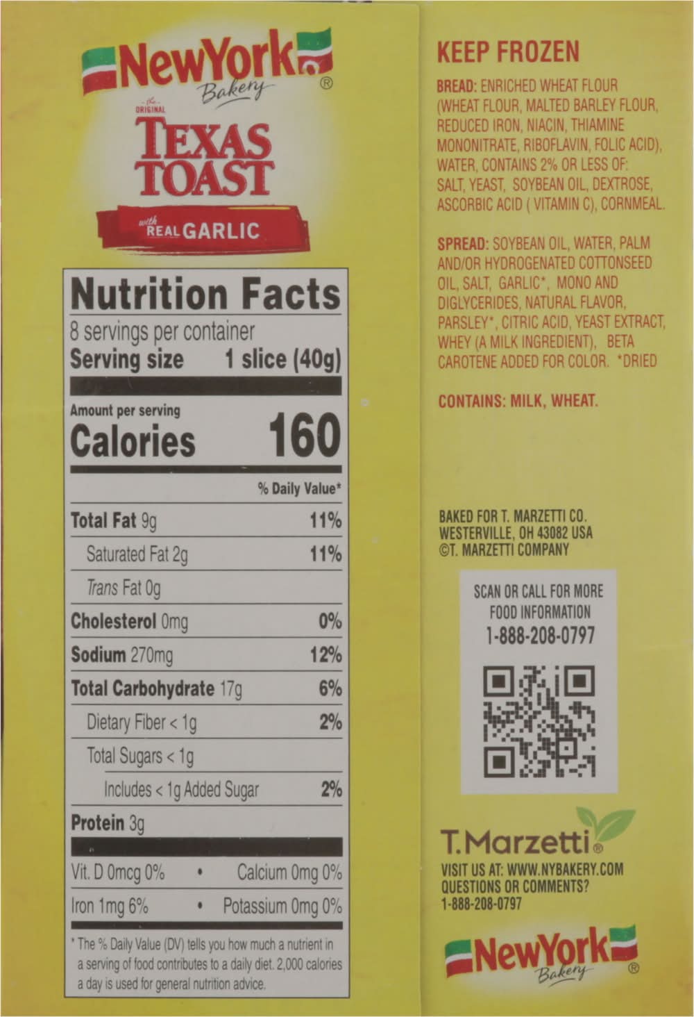 No artificial flavors. Every loaf is baked from scratch. That's why it tastes so good. - Don Penn (3rd generation NYB Baker). Our passion for breadmaking stretches back. Real garlic means real flavor! Our toast is sliced from freshly baked loaves. • Flavor: Garlic • Size: 11.25 OZ • T marzetti, Westerville, OH 43082