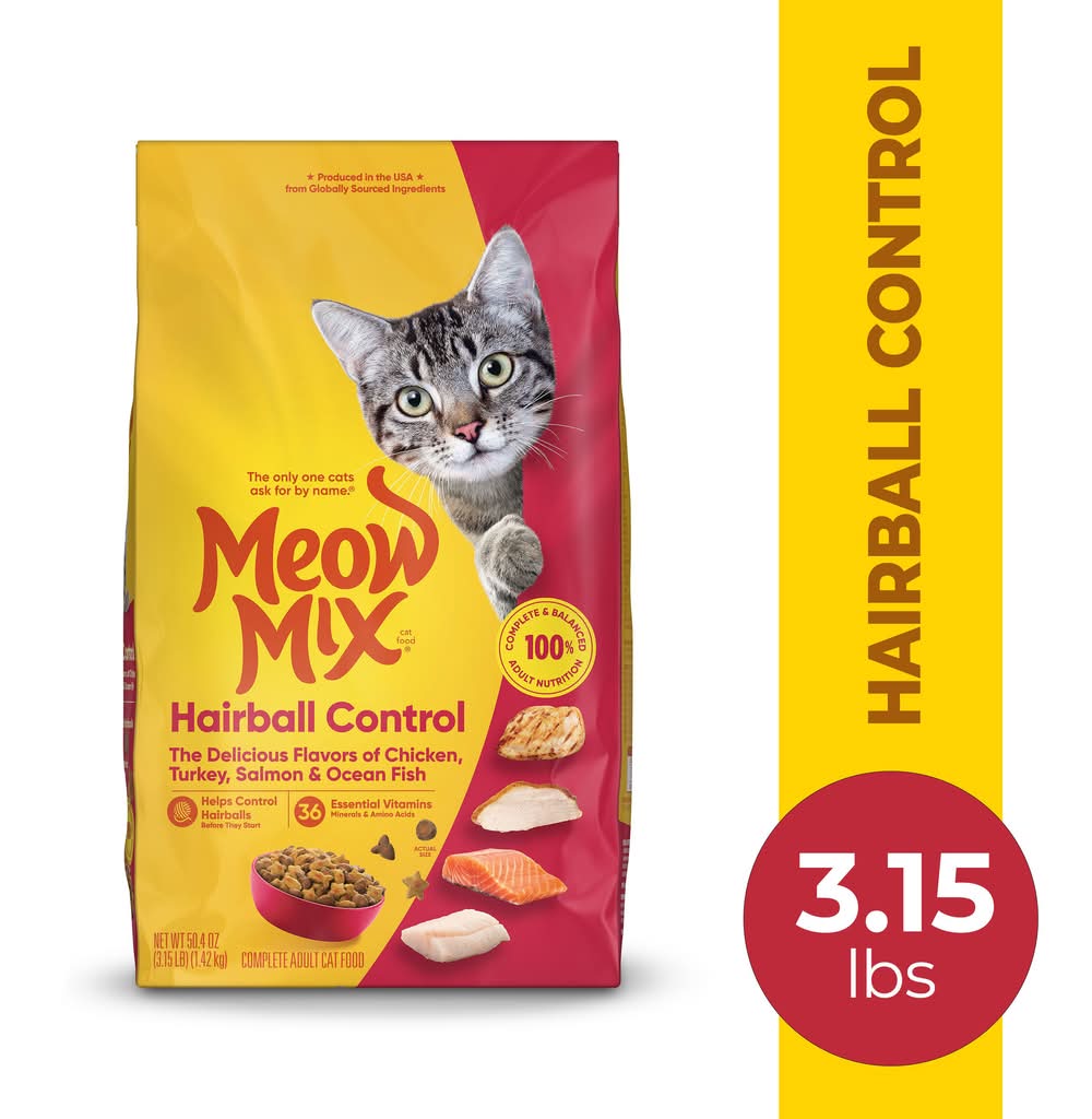 Meow Mix Chicken Turkey Salmon & Ocean Fish Hairball Control Dry Cat Food (3.15 lbs)
