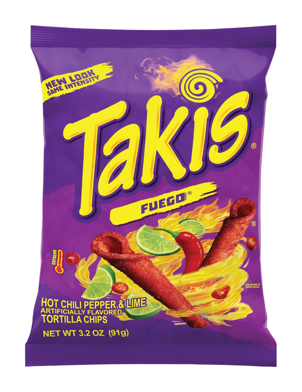 Takis Fuego Rolls 3.2 oz • Flavor: Hot chili pepper & lime • Size: 2 OZ