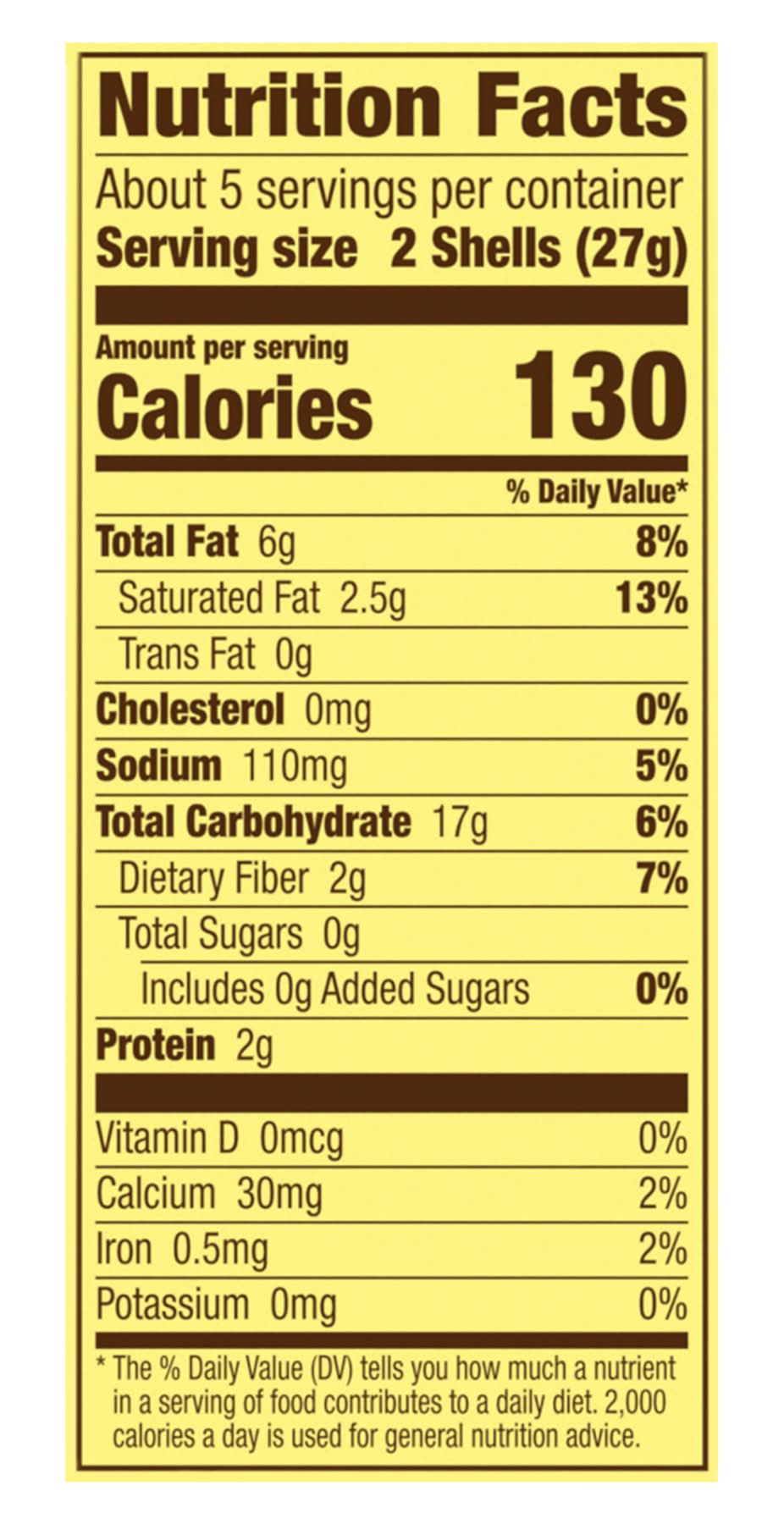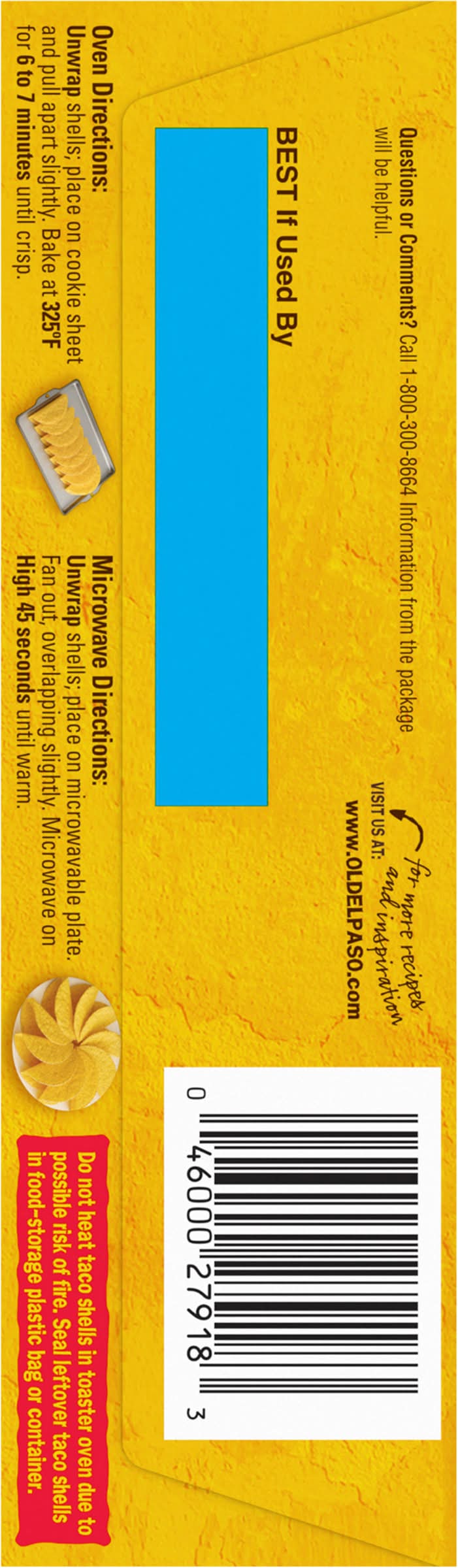 Oven directions: unwrap shells; place on cookie sheet and pull apart slightly. bake at 325 degrees f for 6 to 7 minutes until crisp. microwave directions: unwrap shells; place on microwavable plate. fan out, overlapping slightly. microwave on high 45 seconds until warm. do not heat taco shells in toaster oven due to possible risk of fire. seal leftover taco shells in food-storage plastic bag or container. for max crunch, heat 'em up!