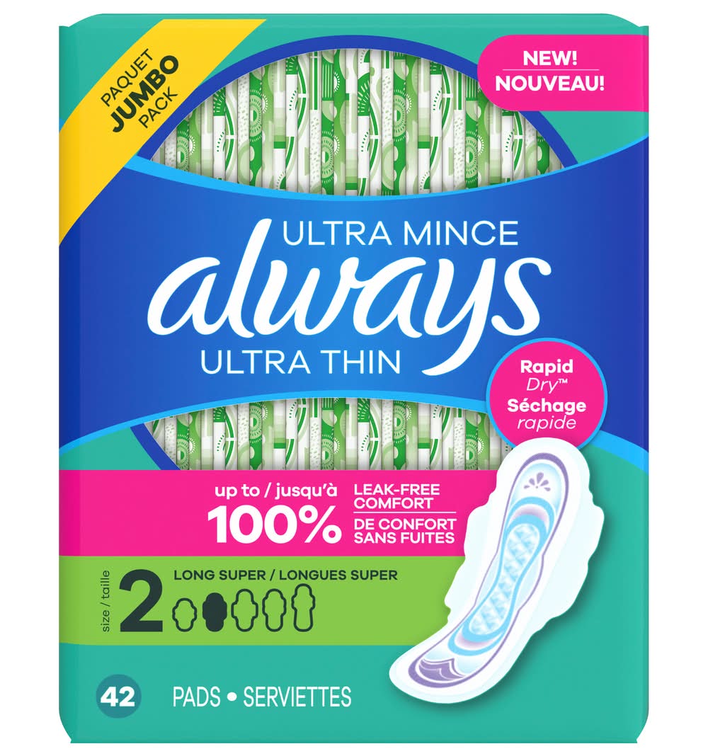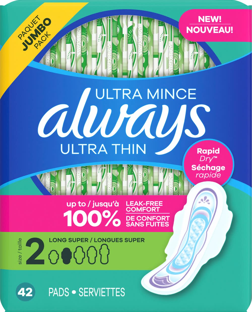 Always Ultra Thin Rapid Dry Long Super Pads With Wings, 2 (42 ct)