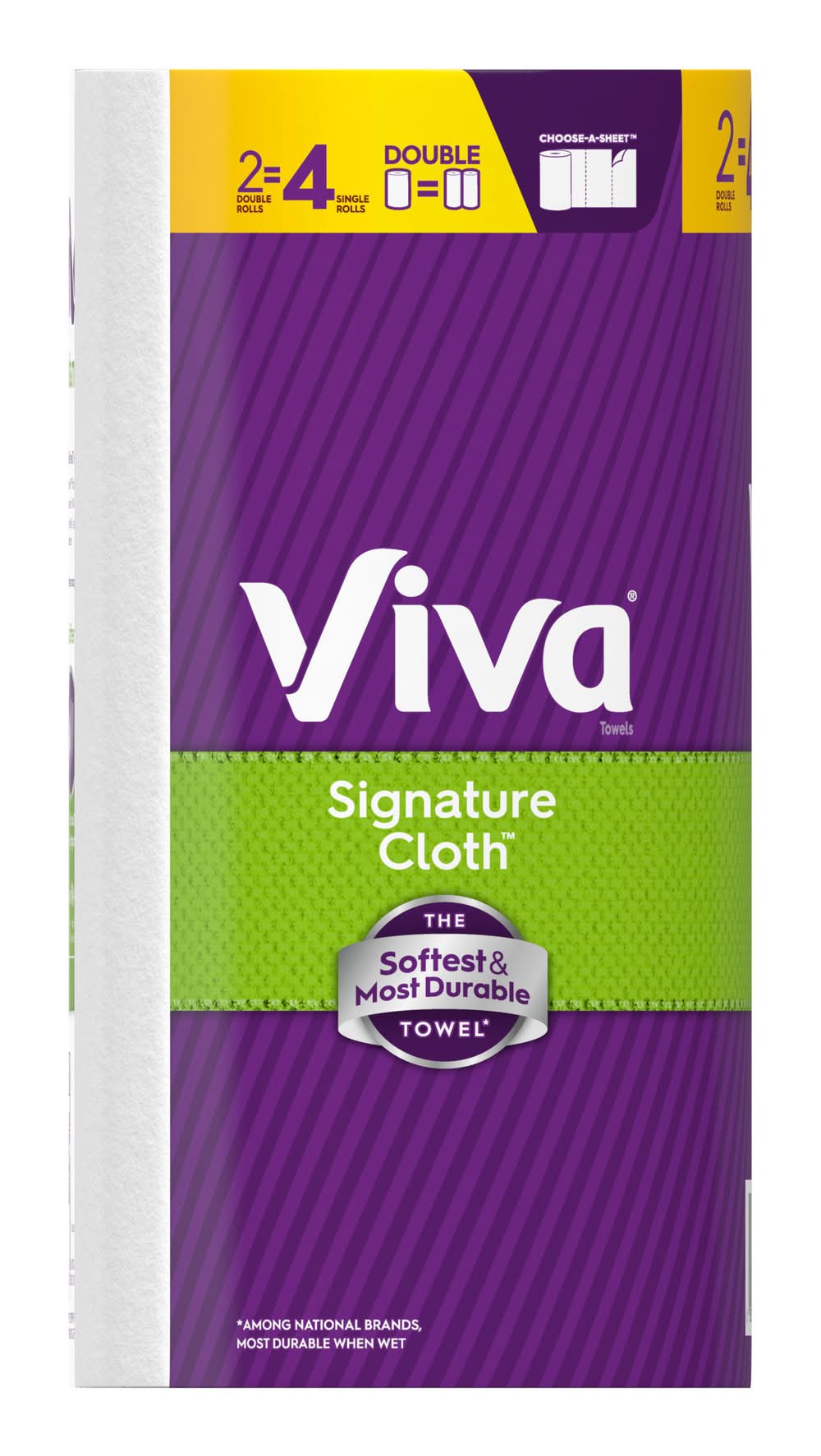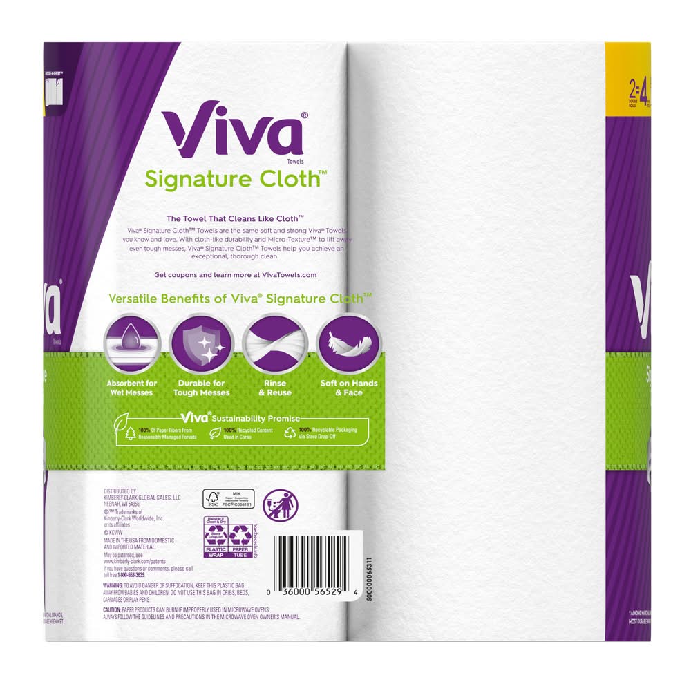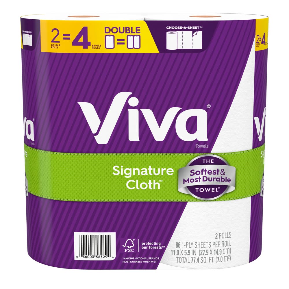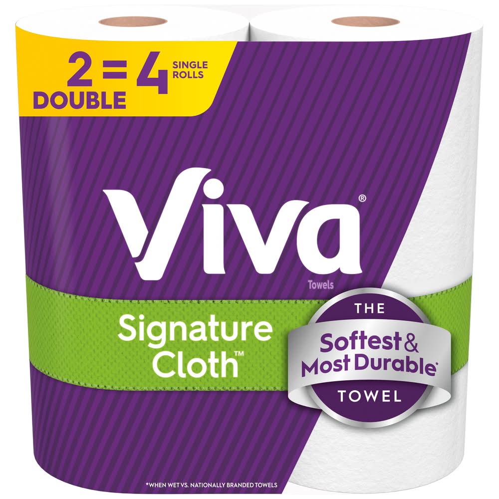 Viva Signature Cloth Paper Towels, 2 Double Rolls, 86 Sheets per Roll • Color: White • Size: 11x5.9 in • Kimberly Clark Global Sales, Llc Neemah, Wi 54956 Trademarks Of Kimberly-clark Worldwide. • Packaging: Reusable