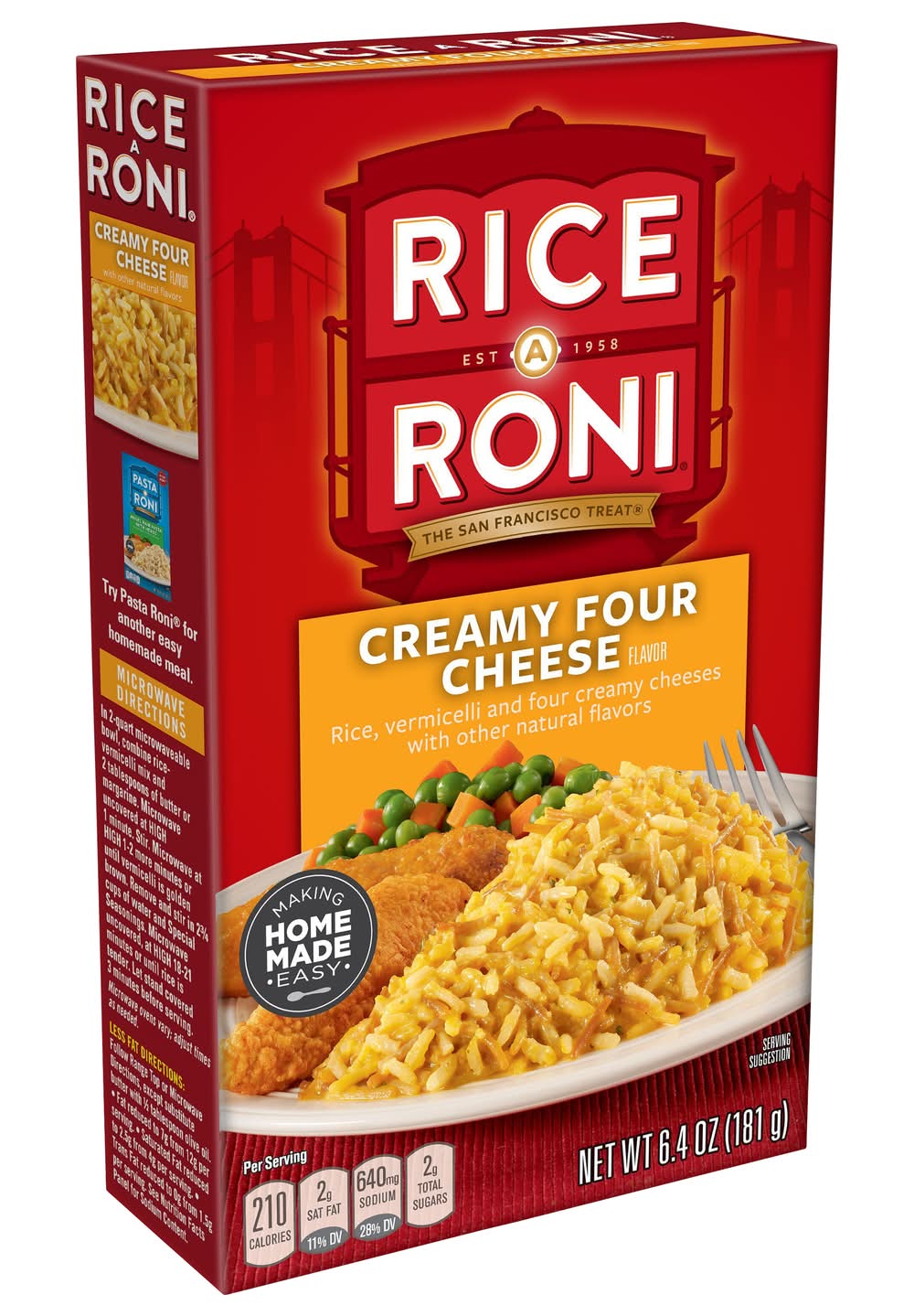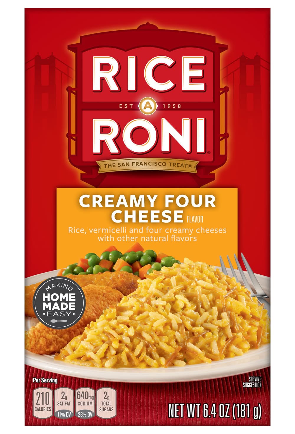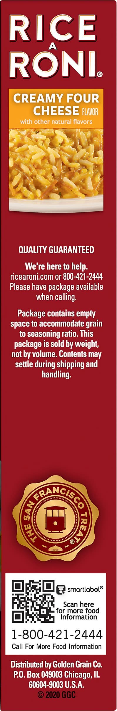 • Flavor: Creamy four cheese • Size: 6.4 OZ • Golden Grain Co., Chicago, IL 6064-9003