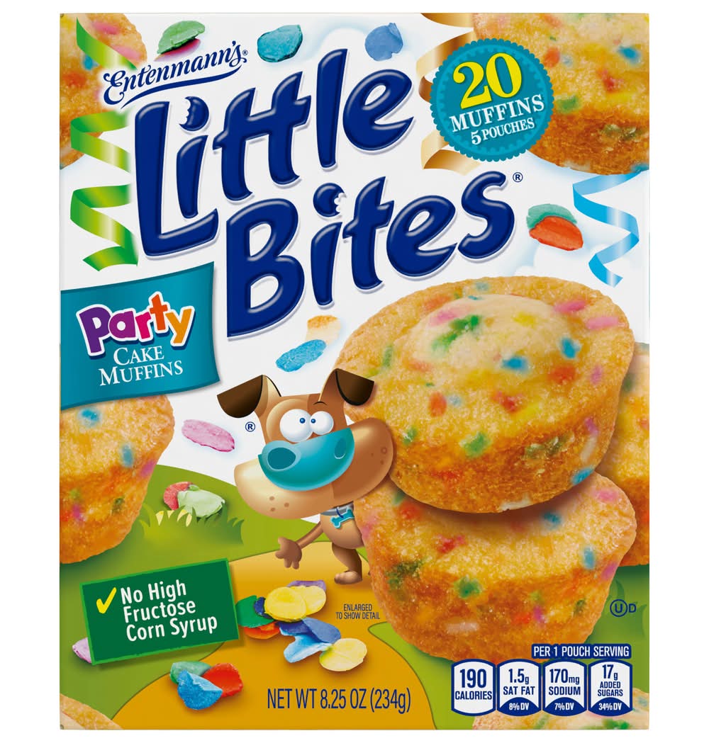 Entenmann's Little Bites Party Cake Mini Muffins, 5 packs, 8.25 oz are the perfect treat for kids and adults alike, offering a delightful burst of flavor in a convenient, on-the-go format. Each 5-pack contains mini muffins that are freshly baked and ready to enjoy, making them an ideal choice for breakfast, a quick snack, or a delightful dessert. With no high fructose corn syrup you can indulge with confidence. These muffins are also Kmd Mexico Kosher Dairy certified, ensuring quality and taste. Pair them with milk or even a scoop of ice cream for a refreshing twist! Enjoy a moment of sweetness, connection, and joy with every bite of these delicious mini muffins, perfect for sharing or savoring solo. • Size: 8.25 OZ • Bimbo Bakeries USA, Inc., Horsham, PA, 19044 • Packaging: Reusable