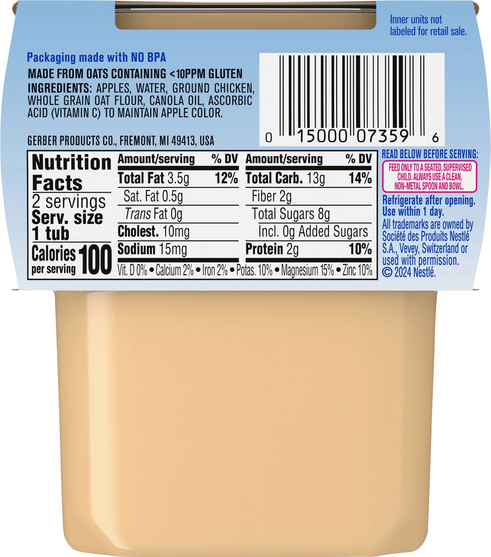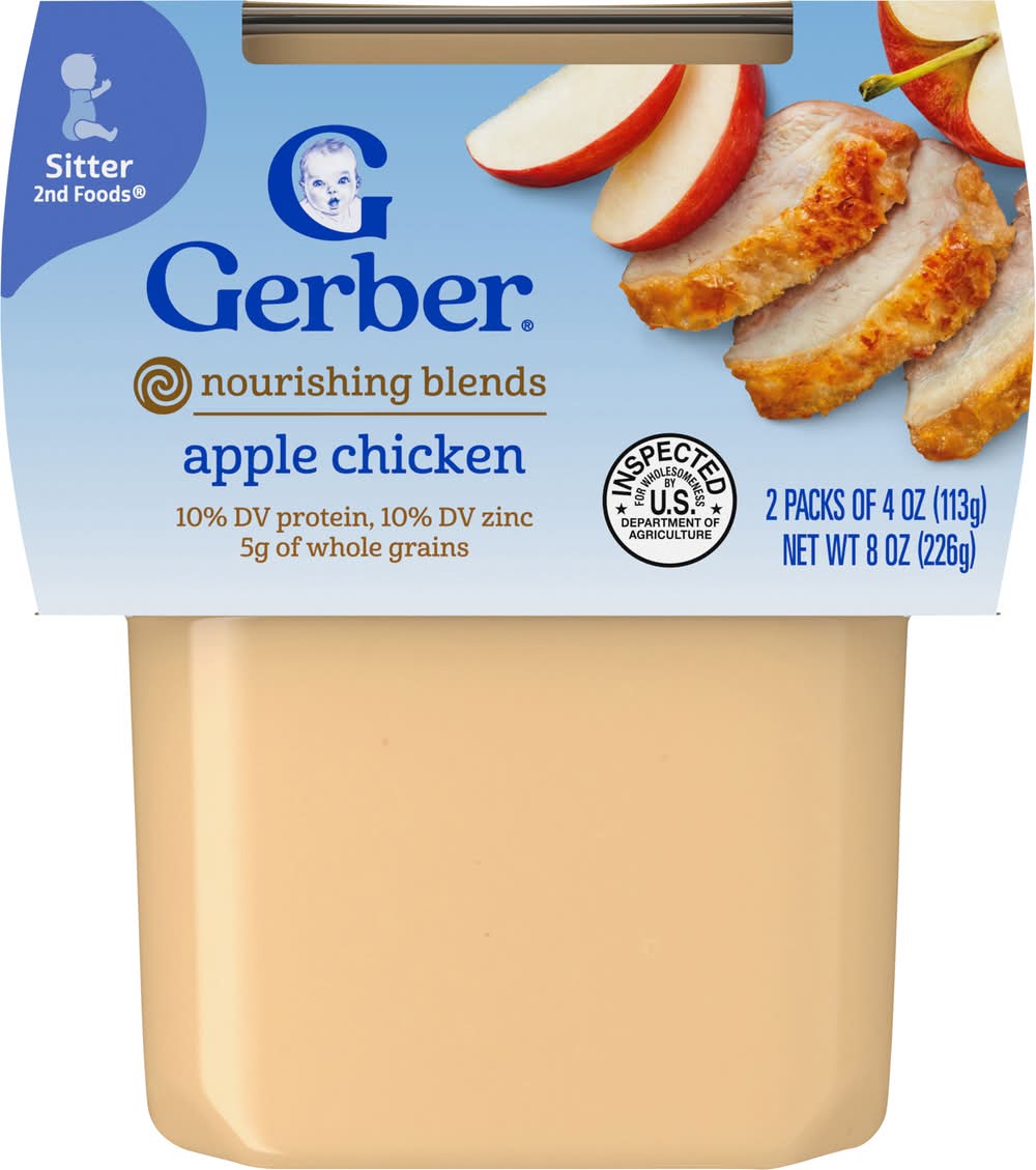 Nourishing Blends, Sitter 2nd Foods • Flavor: Apple chicken • Pack size: 2 • Size: 8 OZ • Gerber Products Company, Fremont, MI, 49413, USA