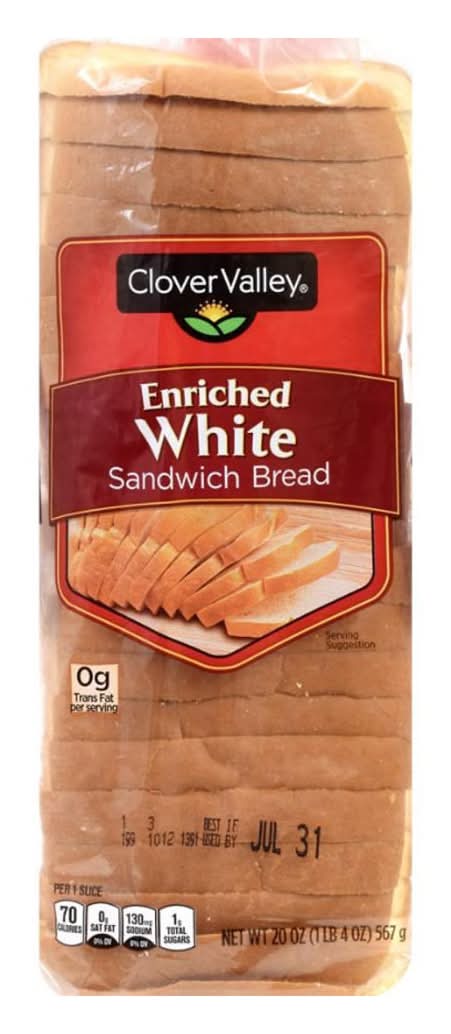 Clover Valley Enriched White Sandwich Bread 20 Oz
