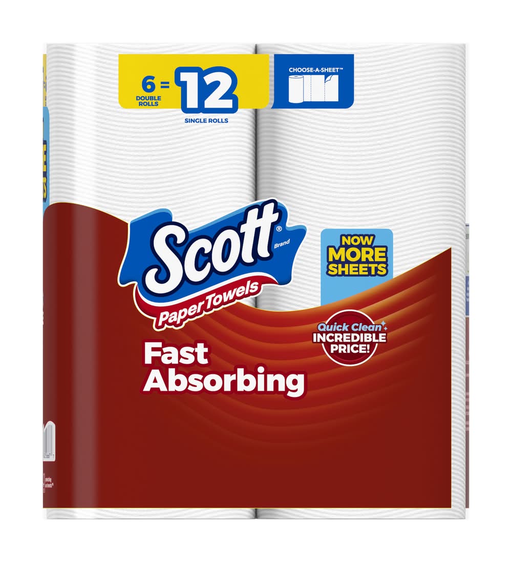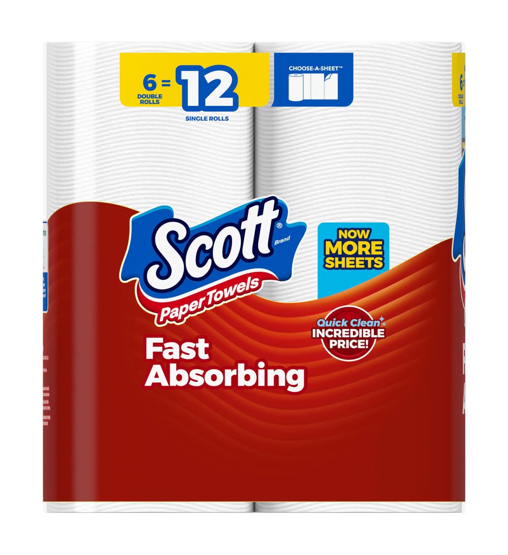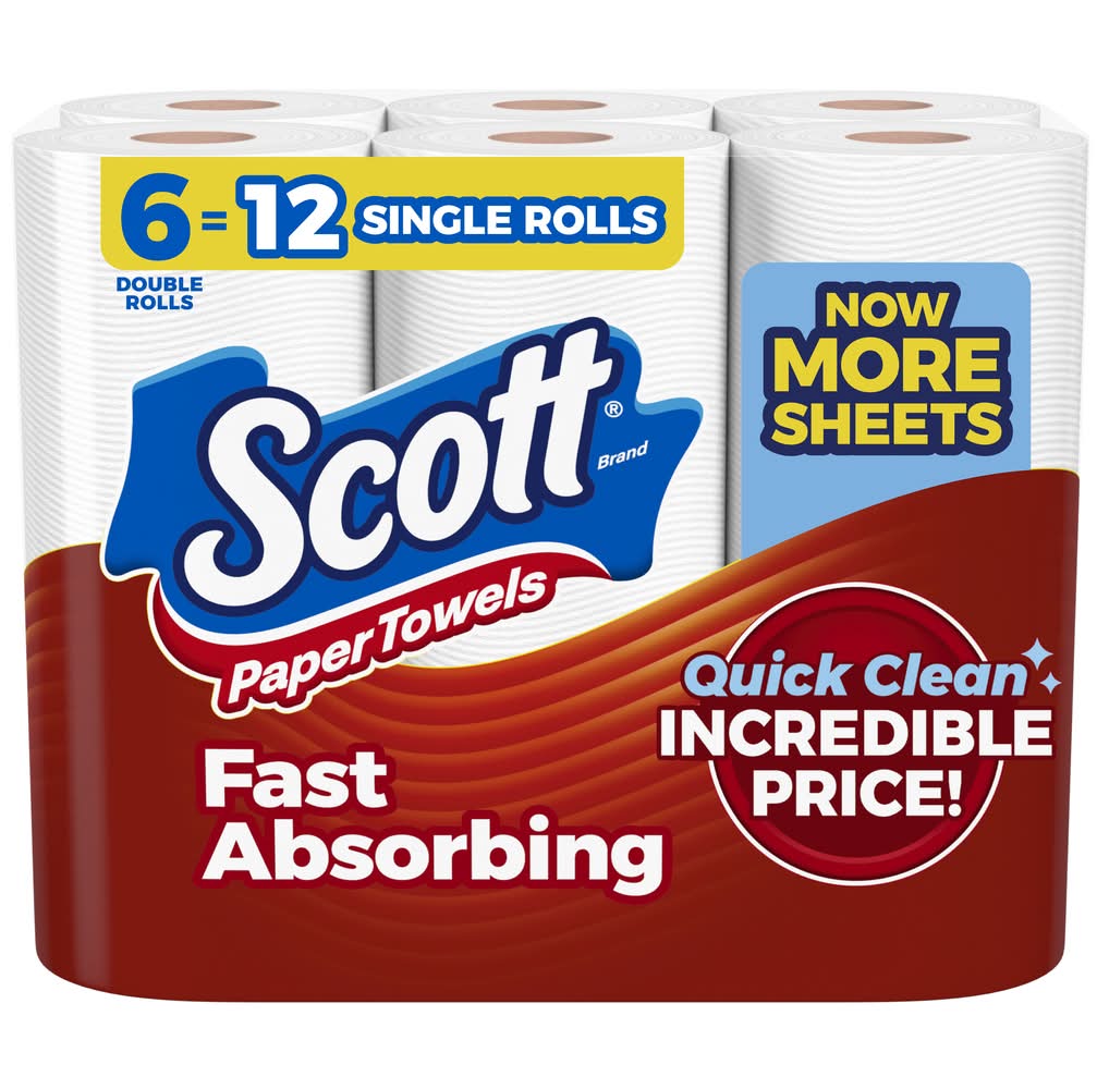 Scott Fast Absorbing Paper Towels Double Rolls, 11 X 5.9 in (6 ct)