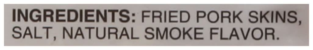 Ingredients: Fried Pork Skins, Salt, Natural Smoke Flavor
