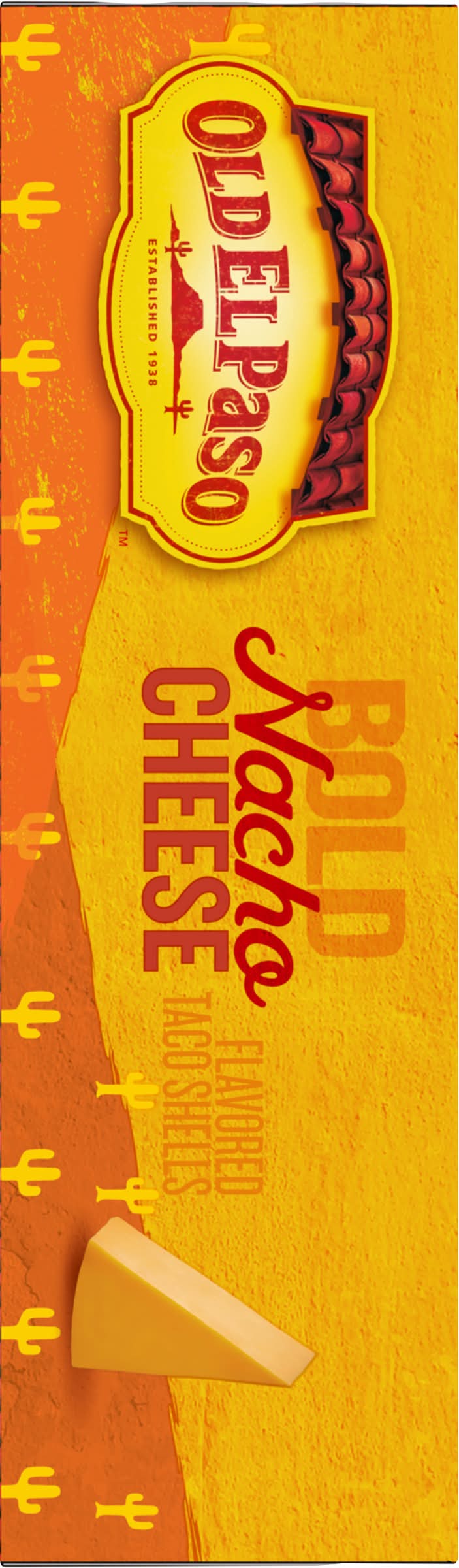 Turn weeknight meals into Mexican-inspired favorites, thanks to Old El Paso Bold Nacho Cheese Flavored Taco Shells. These Stand 'N Stuff shells have a flat bottom, allowing them to stand up on their own for easy filling. Plus, these gluten-free shells are blasted with bold, cheesy flavor. Heat the shells in the oven for about 5-6 minutes before eating for the crispiest and tastiest experience. Then just add your own fillings, from beef and chicken to your favorite veggies, and serve alongside guacamole, sour cream, beans, and more. When you're looking to combine cheesy and crunchy with great flavor, this box of hard-shell tacos stands tall. Perfect for busy families, taco fans, and cheese lovers in your household. Stock your pantry with these shells for the perfect addition to taco nights. • Flavor: Nacho cheese • Size: 1 CT • General Mills Sales, Inc., Minneapolis,MN,55440,USA • Packaging: Reusable