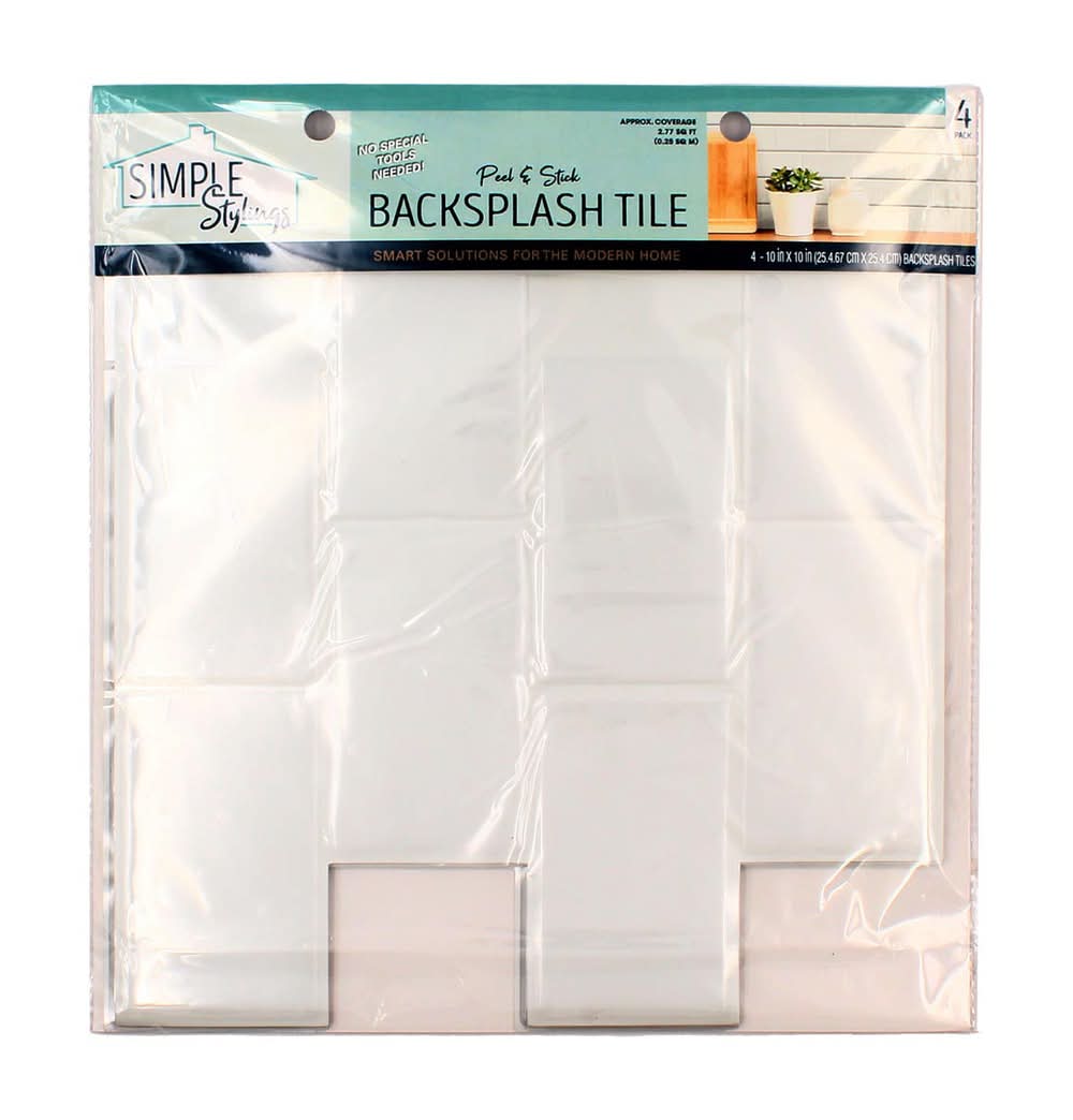 Simple Styling Peel & Stick Backsplash Tile, 10x10 in, White Subway (4 ct)