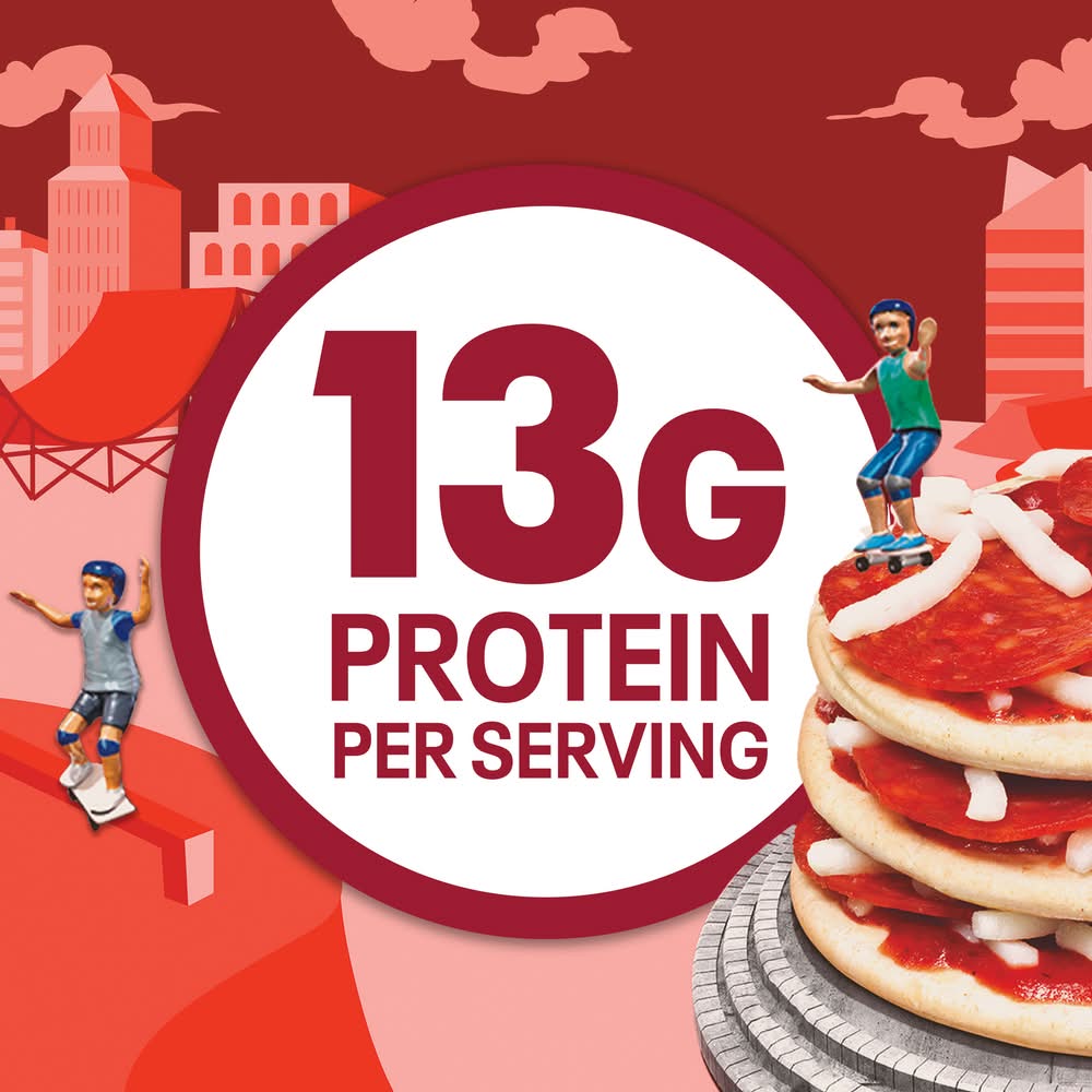 Ingredients: PIZZA CRUST, WHEAT FLOUR [ENRICHED BLEACHED WHEAT FLOUR, (FLOUR, NIACIN, REDUCED IRON, THIAMIN MONONITRATE, RIBOFLAVIN, FOLIC ACID), WHOLE WHEAT FLOUR], WATER, SUGAR, GLYCERIN, SOYBEAN OIL, CONTAINS 2% OR LESS OF YEAST, VITAL WHEAT GLUTEN, MONO- DIGLYCERIDES, SALT, XANTHAN GUM, CALCIUM PROPIONATE, SORBIC ACID, NATURAL AND ARTIFICIAL FLAVOR, ENZYME, CONTAINS: WHEAT, PIZZA SAUCE (WATER, TOMATO PASTE, SUGAR, CONTAINS LESS THAN 2% OF MODIFIED FOOD STARCH, GARLIC POWDER, SALT, ONION POWDER, SPICE, CITRIC ACID, DRIED BASIL, SEA SALT, SODIUM BENZOATE AND POTASSIUM SORBATE [ADDED AS PRESERVATIVES], XANTHAN GUM, NATURAL FLAVOR), PEPPERONI MADE WITH PORK AND CHICKEN (PORK, MECHANICALLY SEPARATED CHICKEN, SALT, CONTAINS 2% OR LESS OF PORK STOCK, SPICES [INCLUDING MUSTARD], DEXTROSE, LACTIC ACID STARTER CULTURE, OLEORESIN OF PAPRIKA, FLAVORING, SODIUM ASCORBATE, SODIUM NITRITE, BHA, BHT, CITRIC ACID), MOZZARELLA PASTEURIZED PREPARED CHEESE PRODUCT (PART-SKIM MILK, WATER, MILK PROTEIN CONCENTRATE, MILKFAT, CONTAINS LESS THAN 2% OF SALT, CHEESE CULTURE, SODIUM CITRATE, SORBIC ACID AS A PRESERVATIVE, ENZYMES, VITAMIN A PALMITATE, CELLULOSE POWDER ADDED TO PREVENT CAKING), CONTAINS: MILK. Contains: CONTAINS: WHEAT, MILK.