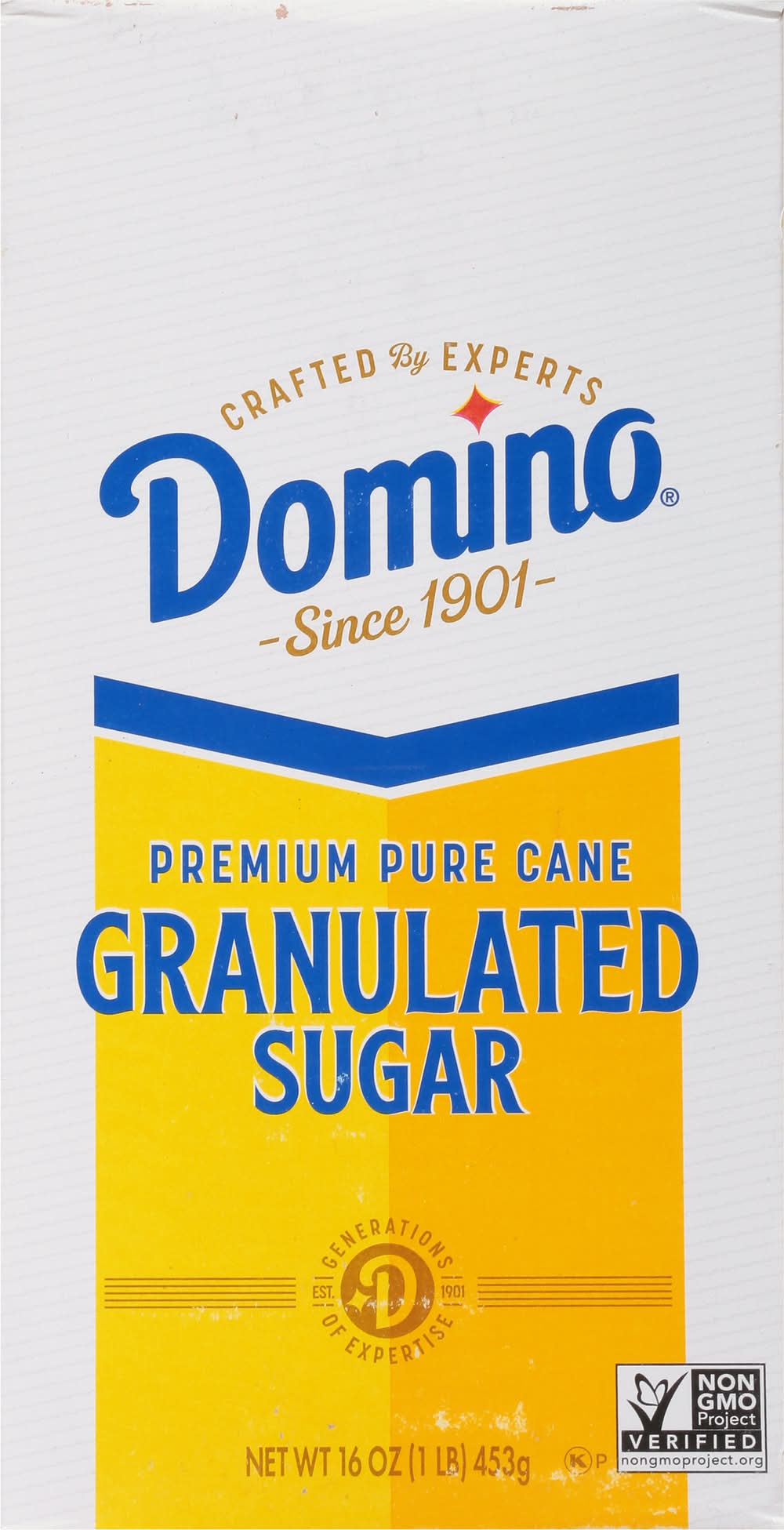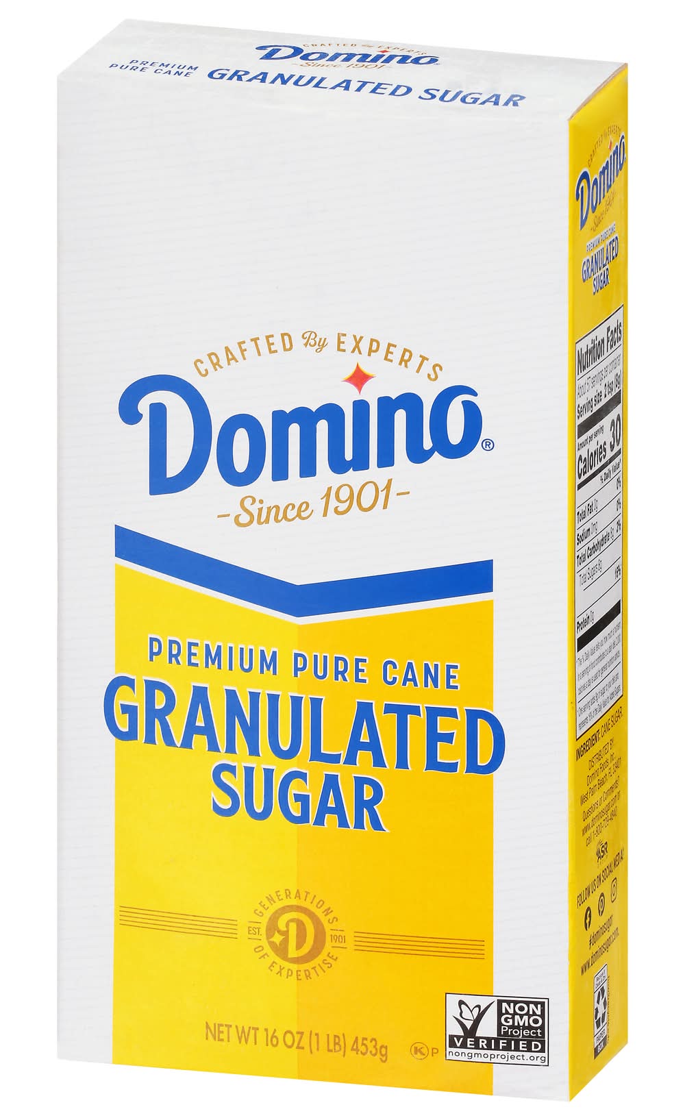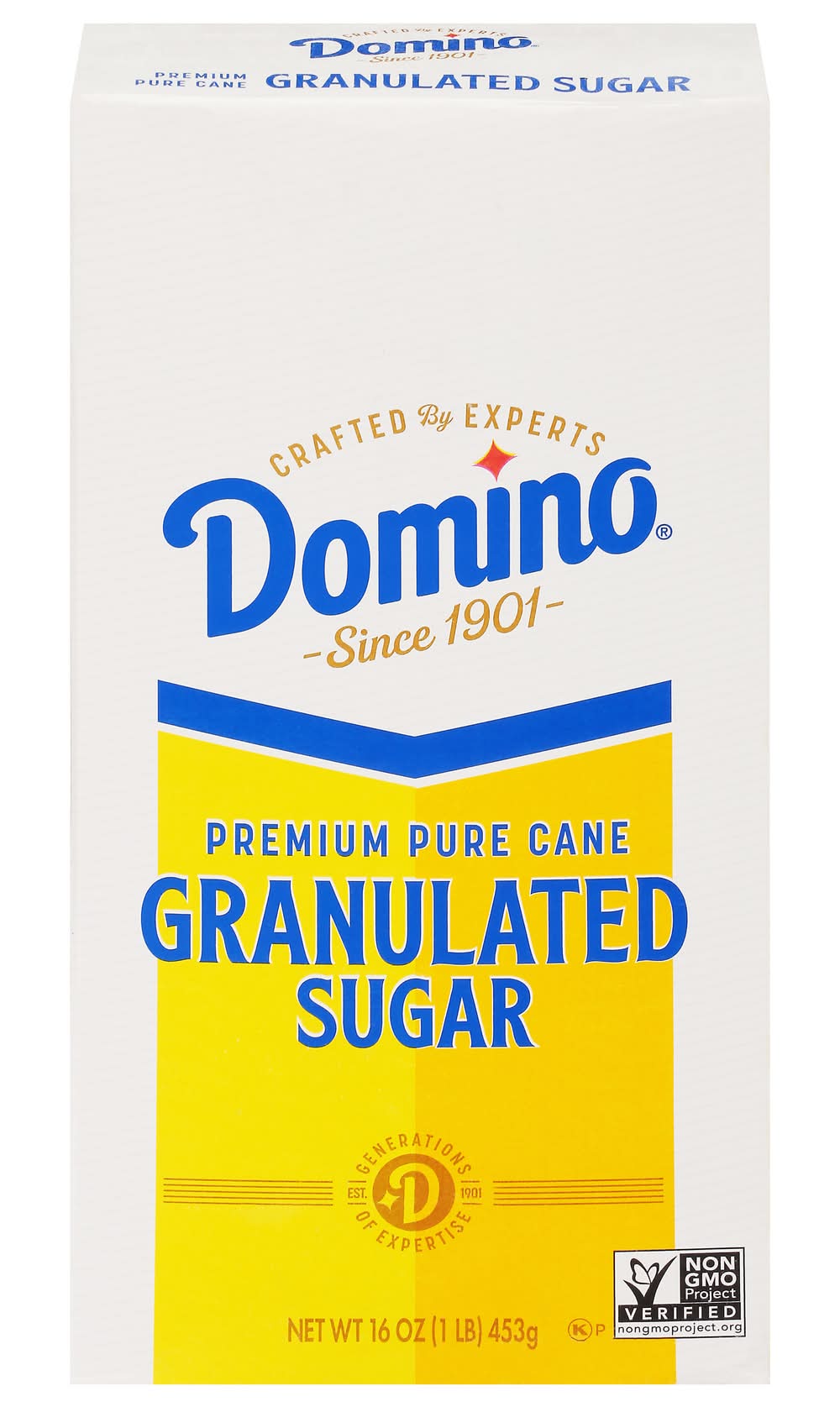 Premium pure cane granulated sugar. Generations of expertise. Only the Best: Since 1901, Domino Sugar has been the trusted partner for generations of bakers. The highest standard to maintain the naturally sweet flavor found in the sugarcane plant. We don't take sugar lightly, and we know you don't either. Packaging: Reusable
