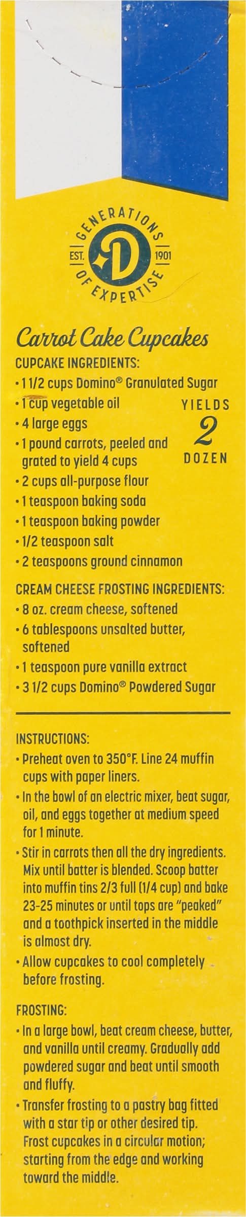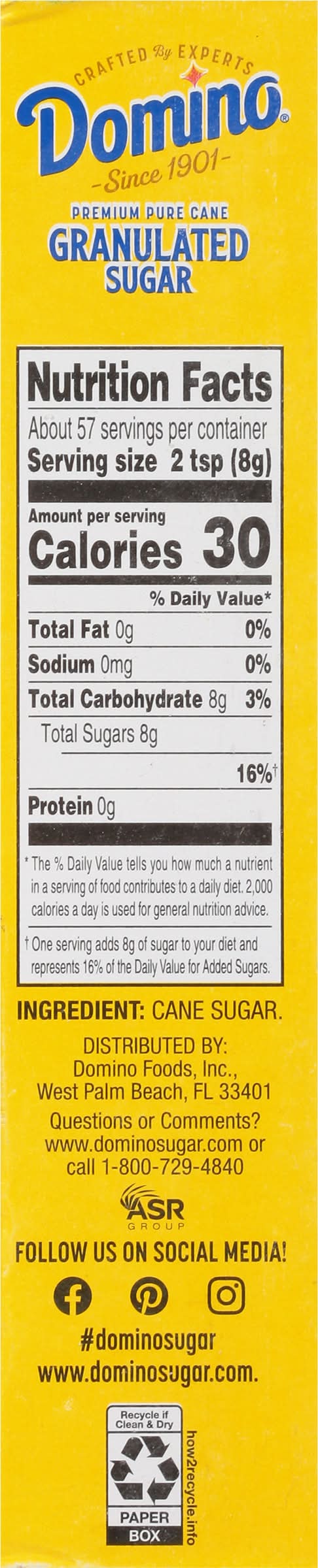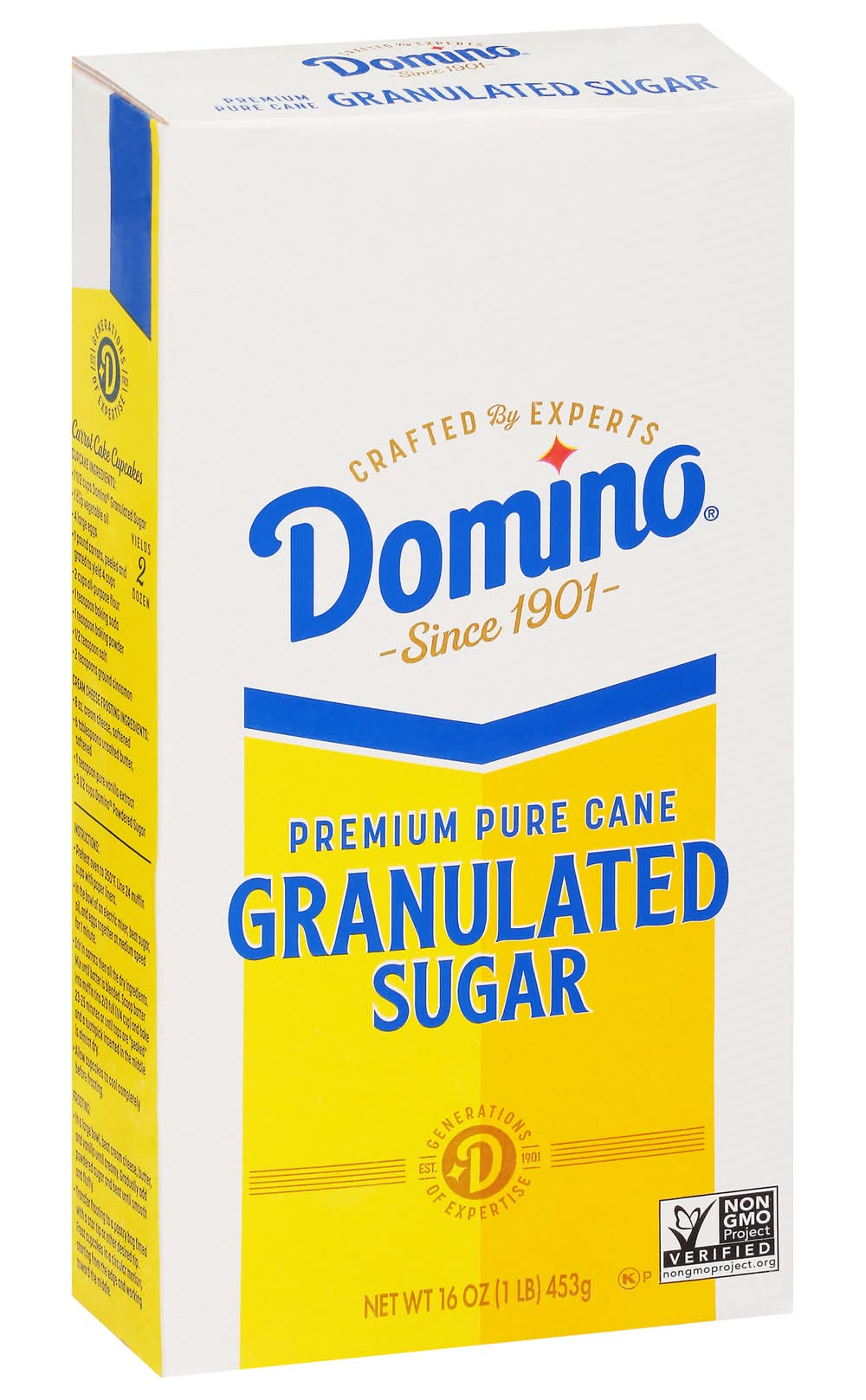 Premium pure cane granulated sugar. Generations of expertise. Only the Best: Since 1901, Domino Sugar has been the trusted partner for generations of bakers. The highest standard to maintain the naturally sweet flavor found in the sugarcane plant. We don't take sugar lightly, and we know you don't either. Packaging: Reusable