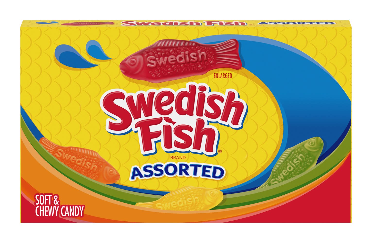 If you love gummies, these soft and chewy Assorted Swedish Fish are an ideal treat! Containing about 3.5 servings, each 3.5-oz. box includes red, green, orange, and yellow fish. These fat-free candies are perfect for movie theaters, stadium concessions, holiday gift baskets, grocery stores, and more.