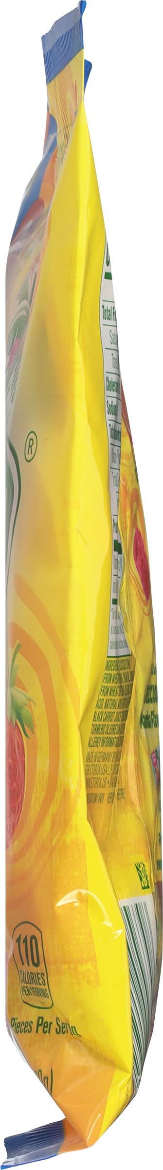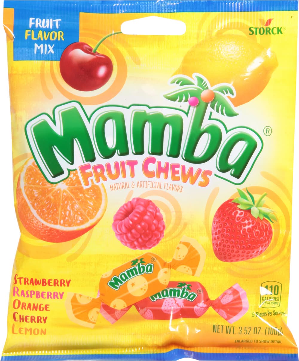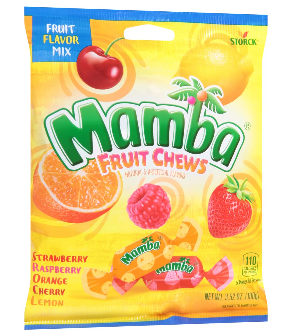 Ingredients: Sugar, Glucose Syrup (from Wheat or Corn), Palm Oil, Sorbitol (from Wheat or Corn), Gelatin, Citric Acid, Natural and Artificial Flavors, Black Carrot Juice Concentrate (Color), Turmeric Oleoresin (Color) Contains: Wheat, Corn