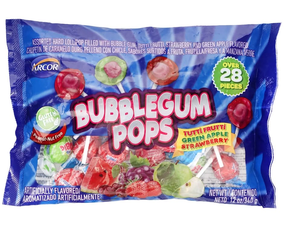 Arcor Bubble Gum Pops Bag, Assorted (12 oz, 28 ct)