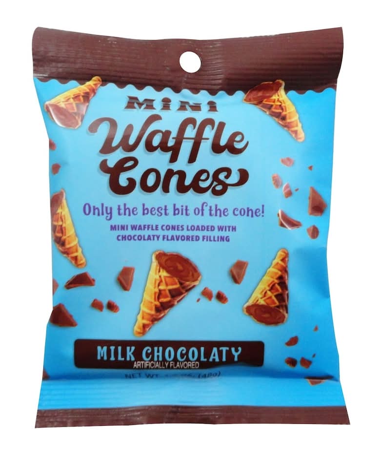 Get the best bit of the cone with these adorable mini waffle cones loaded with rich milk chocolaty filling that delivers ice cream shop flavor without the mess! Each crispy cone combines the satisfying crunch of a fresh waffle cone with creamy chocolate filling that melts perfectly in your mouth. These delightful, cost-friendly, bite-sized treats are perfect for satisfying sweet cravings on-the-go, sharing at parties, or enjoying as a fun twist on traditional chocolate snacks. Stock up on these innovative treats that bring the joy of ice cream cones to snack time without needing a freezer! Flavor: Milk chocolaty