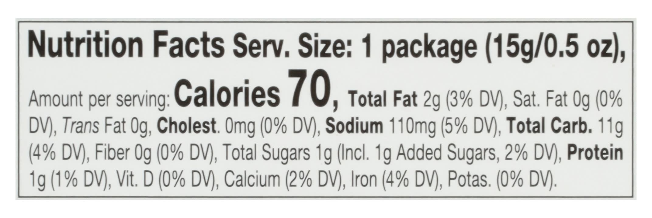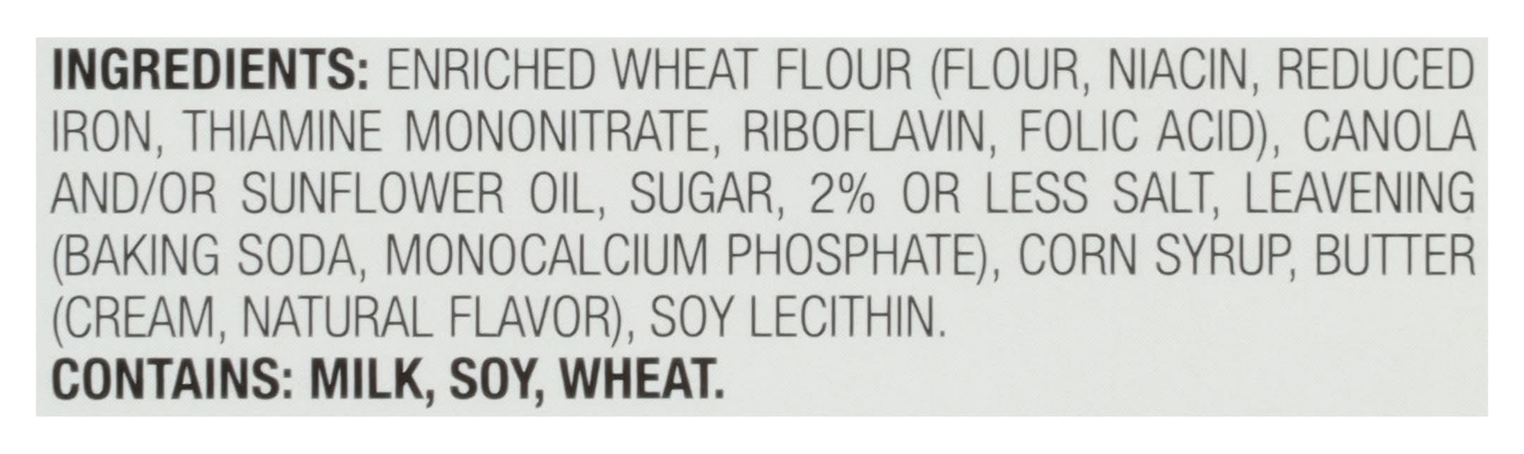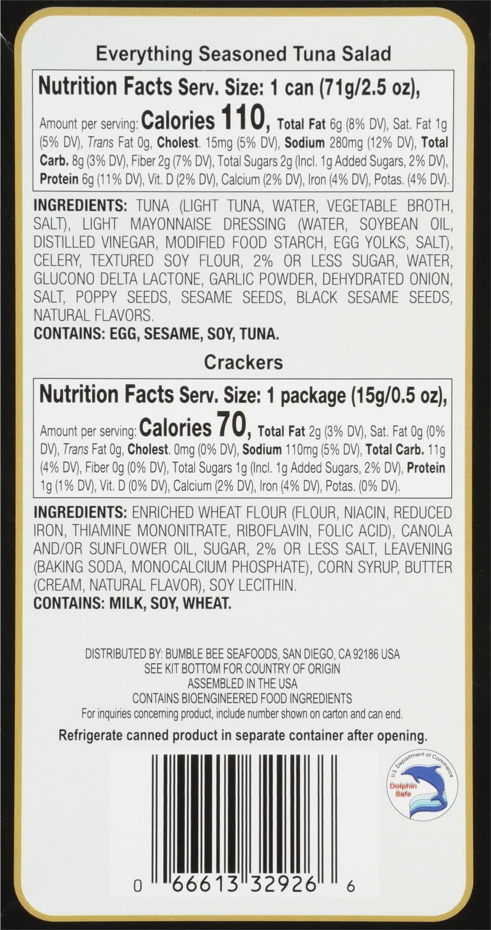 Ingredients: Buffalo Style Chicken Salad: Cooked Chicken, Celery, Sauce (Vinegar, Aged Red Cayenne Peppers, Salt, Canola Oil, Contains 2% or Less Natural Butter Flavor, Xanthan Gum, Garlic, Citric Acid (Preservative)), Mayonnaise (Soybean Oil, Water, Eggs, Egg Yolks, Distilled Vinegar, Salt), Water Chestnuts, Textured Soy Flour, Sugar, Contains 2% or Less Onion, Water, Glucono Delta Lactone, Cayenne Pepper, Oleoresin Paprika (Color). Crackers: Enriched Flour (Wheat Flour, Niacin, Reduced Iron, Thiamine Mononitrate (B1), Riboflavin (B2), Folic Acid), Canola Oil, Sugar, Contains 2% or Less Salt, Corn Syrup, Baking Soda, Butter (Cream, Natural Flavor), Soy Lecithin, Monocalcium Phosphate. Contains: Eggs, Soybeans, Celery, Tree Nuts, Chestnuts, Milk, Wheat, Corn