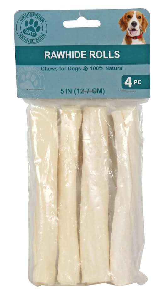 Greenbrier Kennel Club Rawhide Rolls For Dogs, 5 in (4 ct)