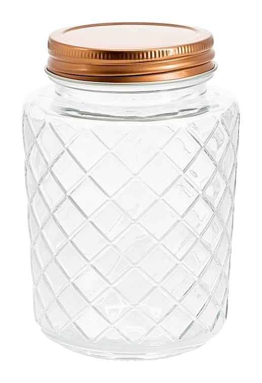 Glass jars are cute, creative, and versatile. They measure and have a lattice pattern that can add to the natural charm of whatever room it lives in. They come with rose gold metal lids and the jars are great for storing office stationary, small craft supplies, toiletries, dry pantry goods, and more. • Color: Clear-rose gold • Size: 5.37x3.75 in