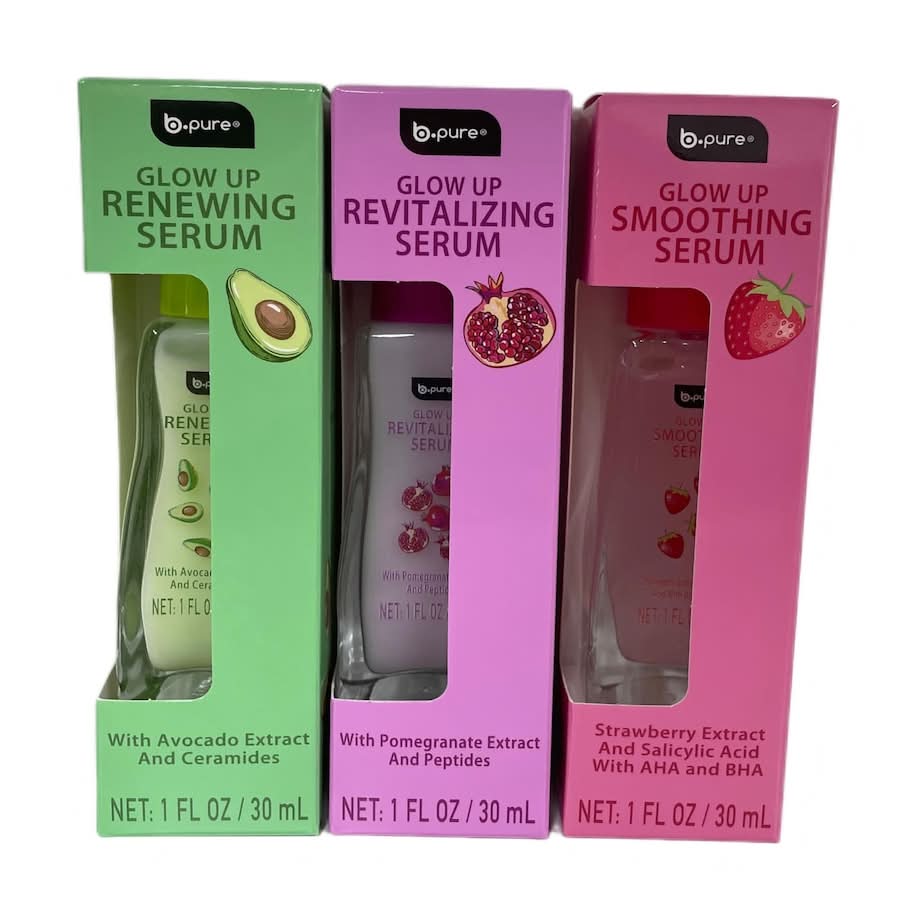 B Pure Glow Up Smoothing Serum, Strawberry-Pomegranate-Avocado (3 x 1 fl oz)