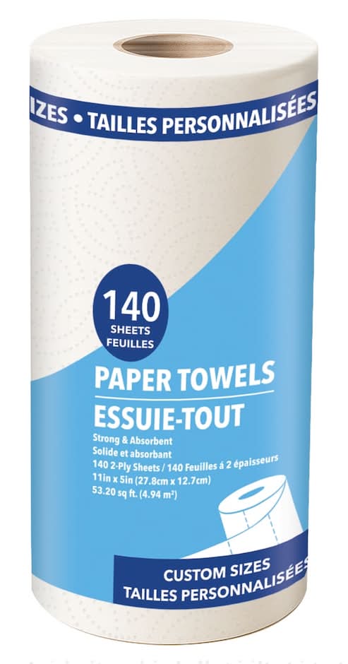 Our 2-Ply Paper Towels provide superior absorbency, ensuring efficient cleaning and quick spill cleanup. The 2 layers make these paper towels sturdy and reliable for a variety of tasks. Not too much or too little... always pick the right-sized paper towel for every job! Each rolls contains 140 sheets to use however you need. They are great for kitchens, schools, cleaning services, churches, and more. Stock up and share for less! Size: Custom Sheet