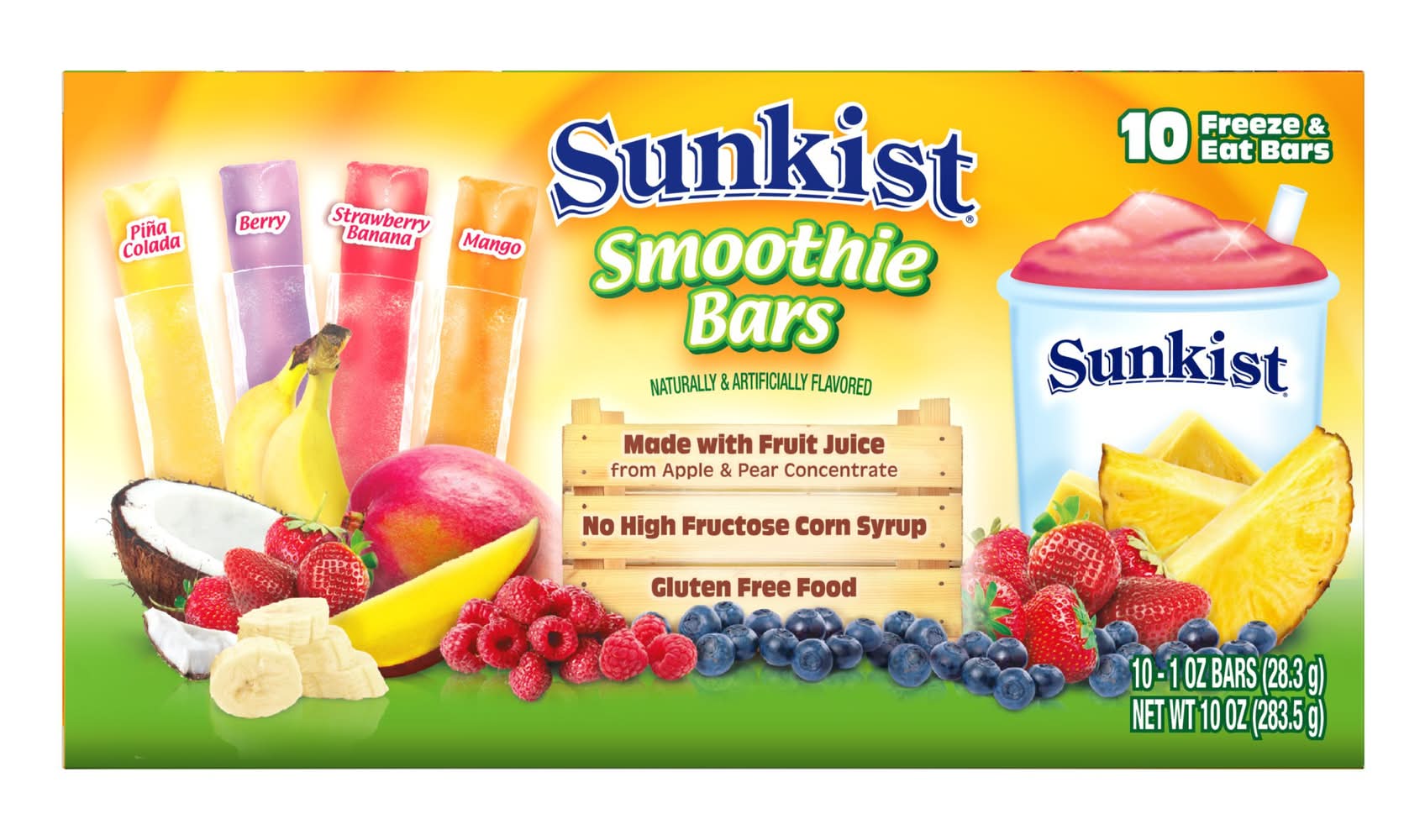 Sunkist Pina Colada Berry Strawberry Banana Mango Smoothie Bars (10 oz)