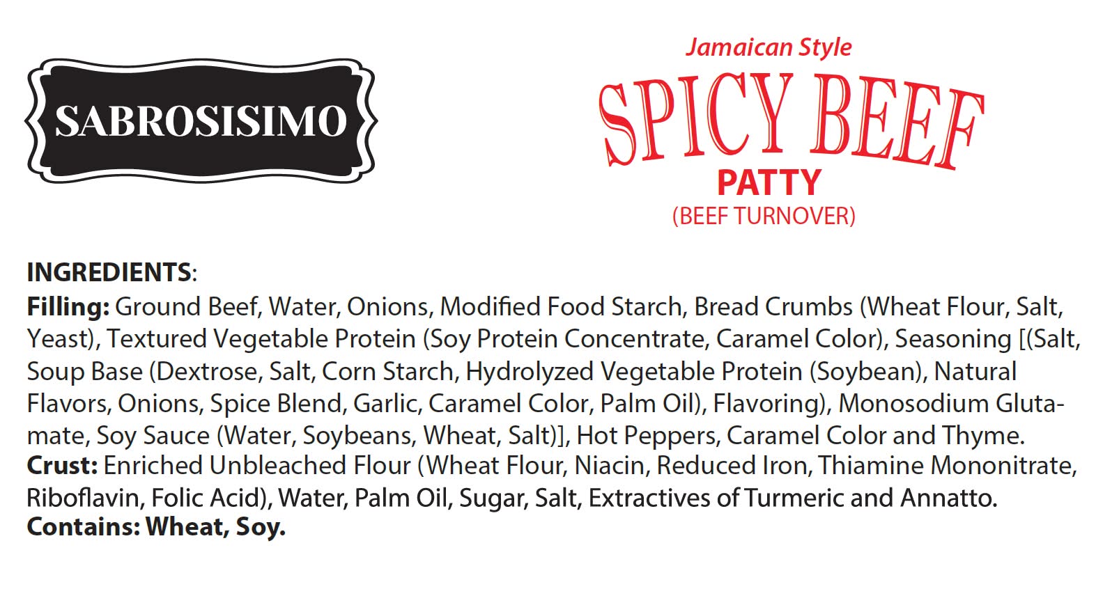 Sabrosisimo Jamaican Style Spicy Beef Patty (10 x 4 oz)