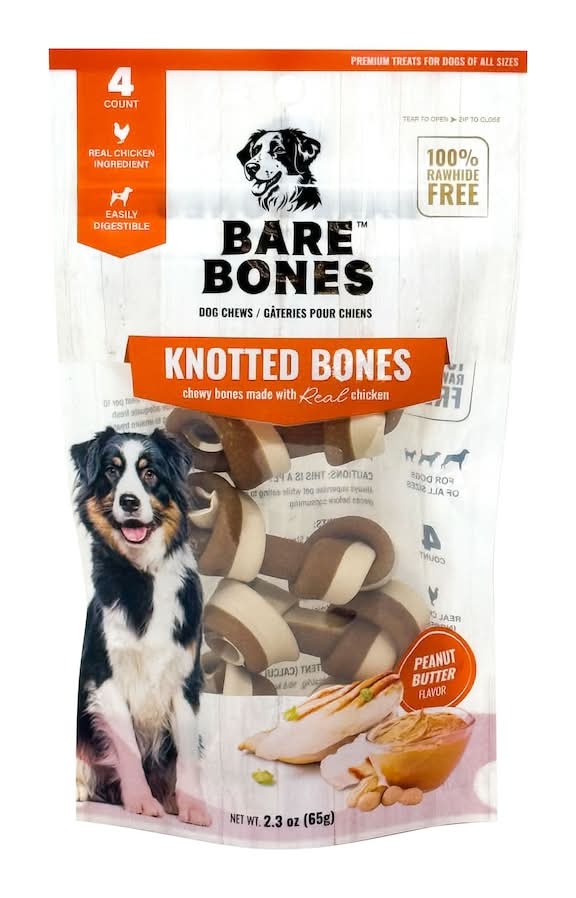 Bare Bones Knotted Bones Dog Chews, Peanut Butter (2.3 oz, 4 ct)