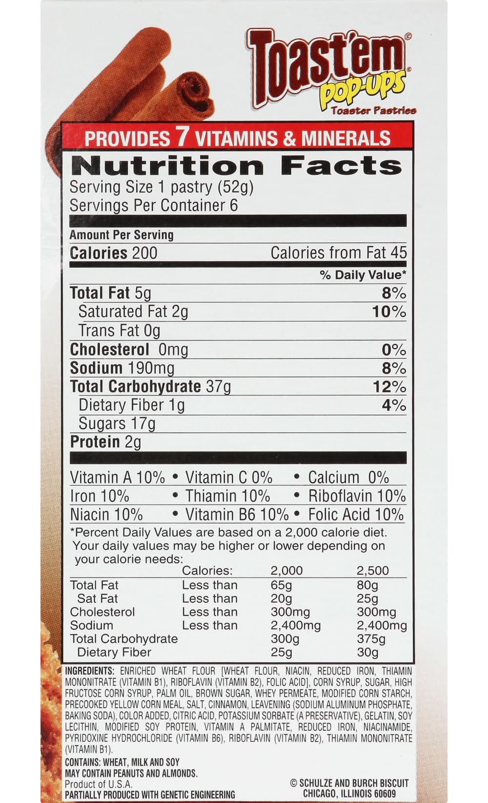 Toaster Pastries, Brown Sugar Cinnamon, Frosted Number of servings: 6