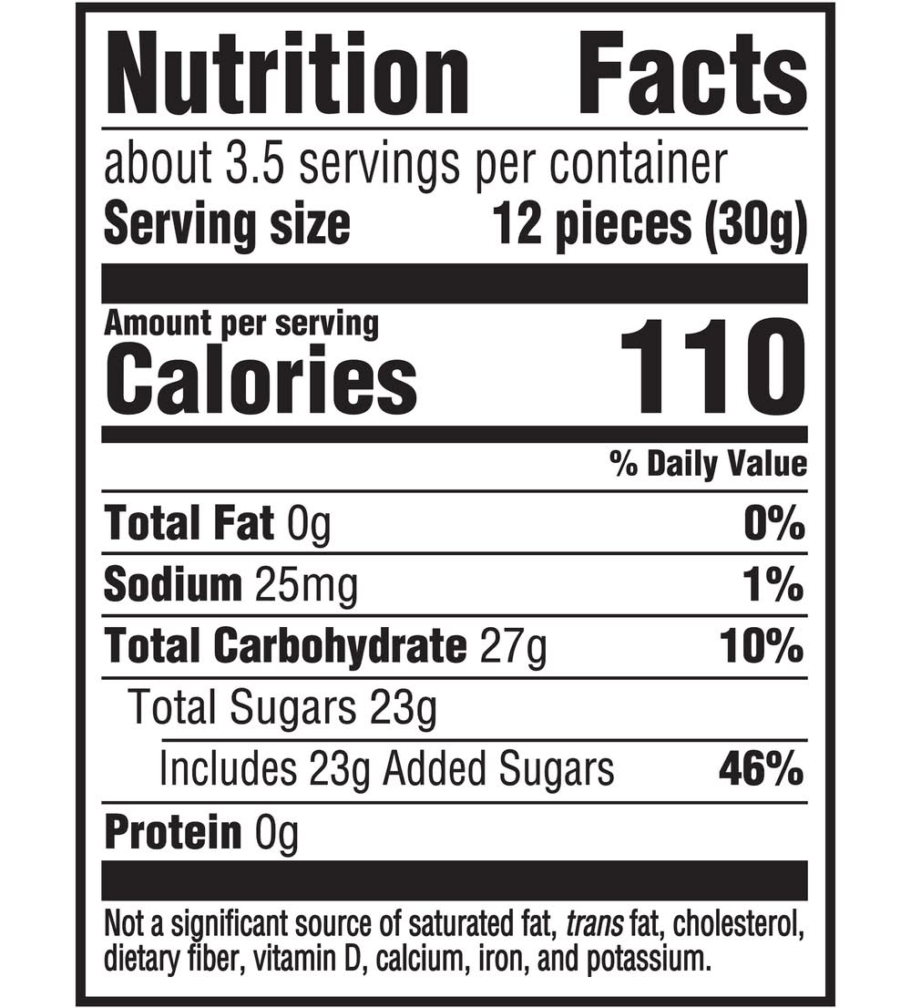 Ingredients: INGREDIENTS: SUGAR, INVERT SUGAR, CORN SYRUP, MODIFIED CORN STARCH, CONTAINS LESS THAN 2% OF TARTARIC ACID, CITRIC ACID, NATURAL AND ARTIFICIAL FLAVOR, BLUE 1.