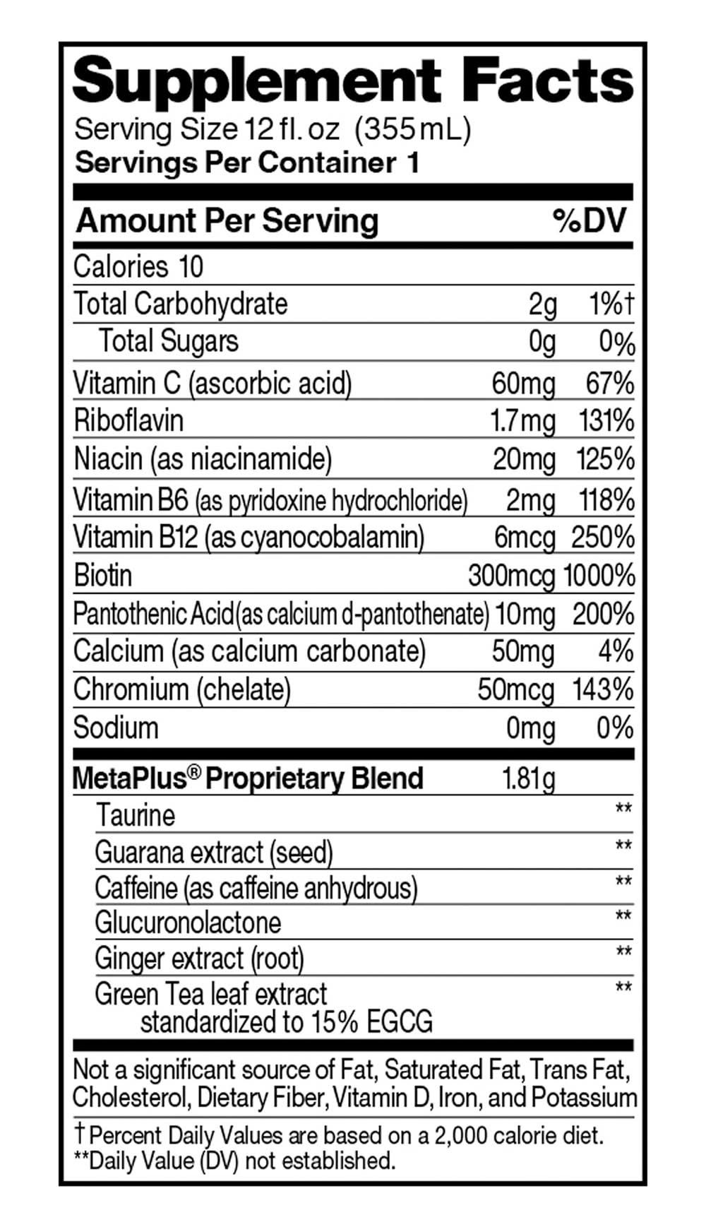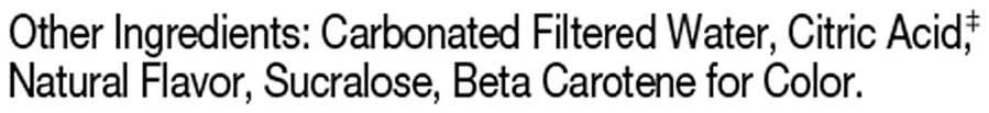 Ingredients: Carbonated Filtered Water, Citric Acid (Citric Acid is Added for Flavor; It is not Used as a Preservatives), Natural Flavor, Sucralose, Beta Carotene for Color Contains 20000mg of caffeine