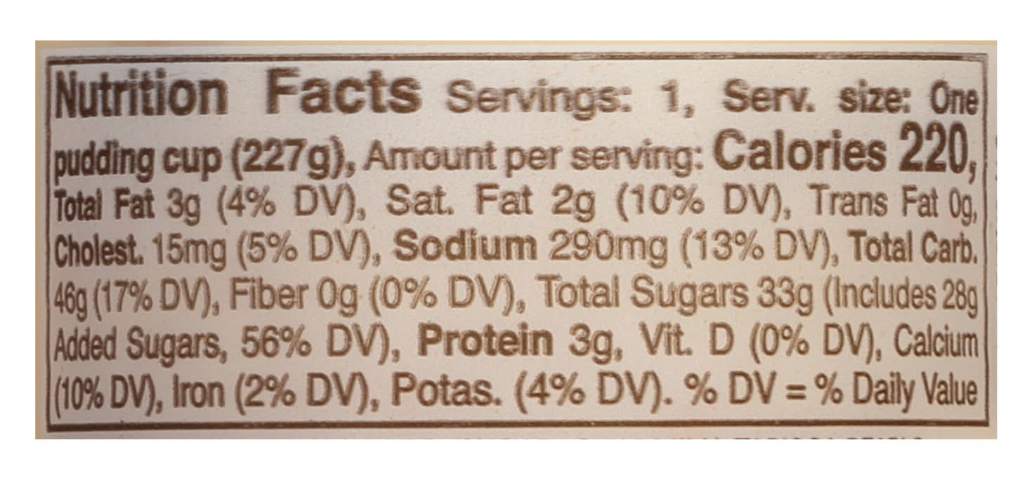 Ingredients: Whole Milk, Water, Sugar, Skim Milk, Tapioca Pearls, Modified Corn Starch, Salt, Potassium Sorbate (Maintains Freshness), Natural & Artificial Flavor, Annatto (Color), Caramel (Color) Contains: Milk