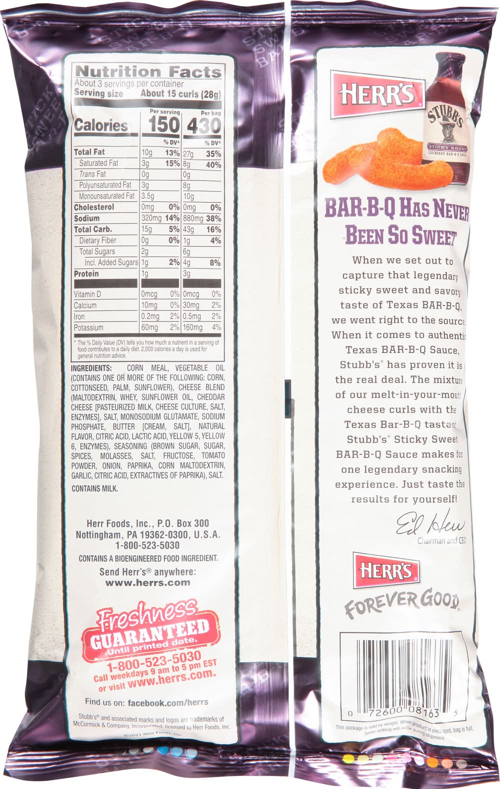 Herr's Stubb's Sticky Curls, Sweet Bbq Cheese (2.75 oz)
