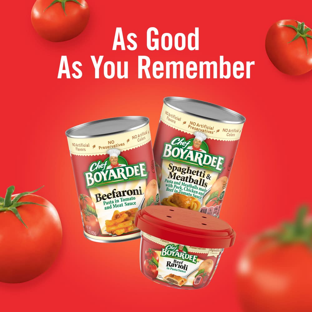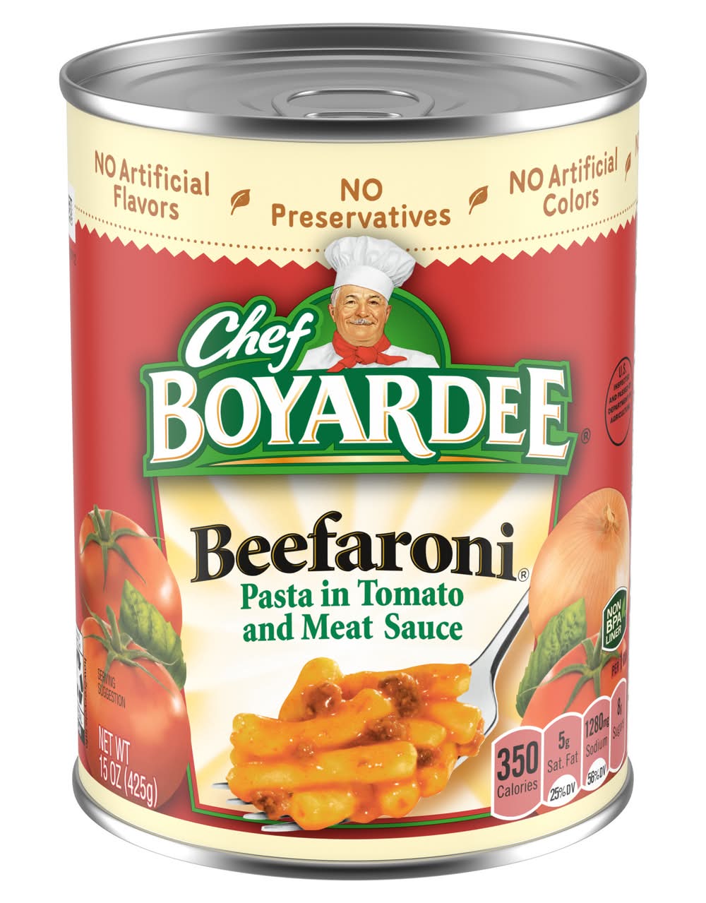 is a delicious and convenient prepared meal that is ready to eat in minutes and has delighted families for generations. Made with enriched pasta smothered in rich, Italian-flavored tomato and meat pasta sauce, this canned food has the timeless flavor everyone loves. Made with no artificial flavors, colors or preservatives, this iconic pantry staple makes a wholesome meal for kids of ALL ages. Conagra, P.O. Box 3534, Dept CB, Chicago IL 60654