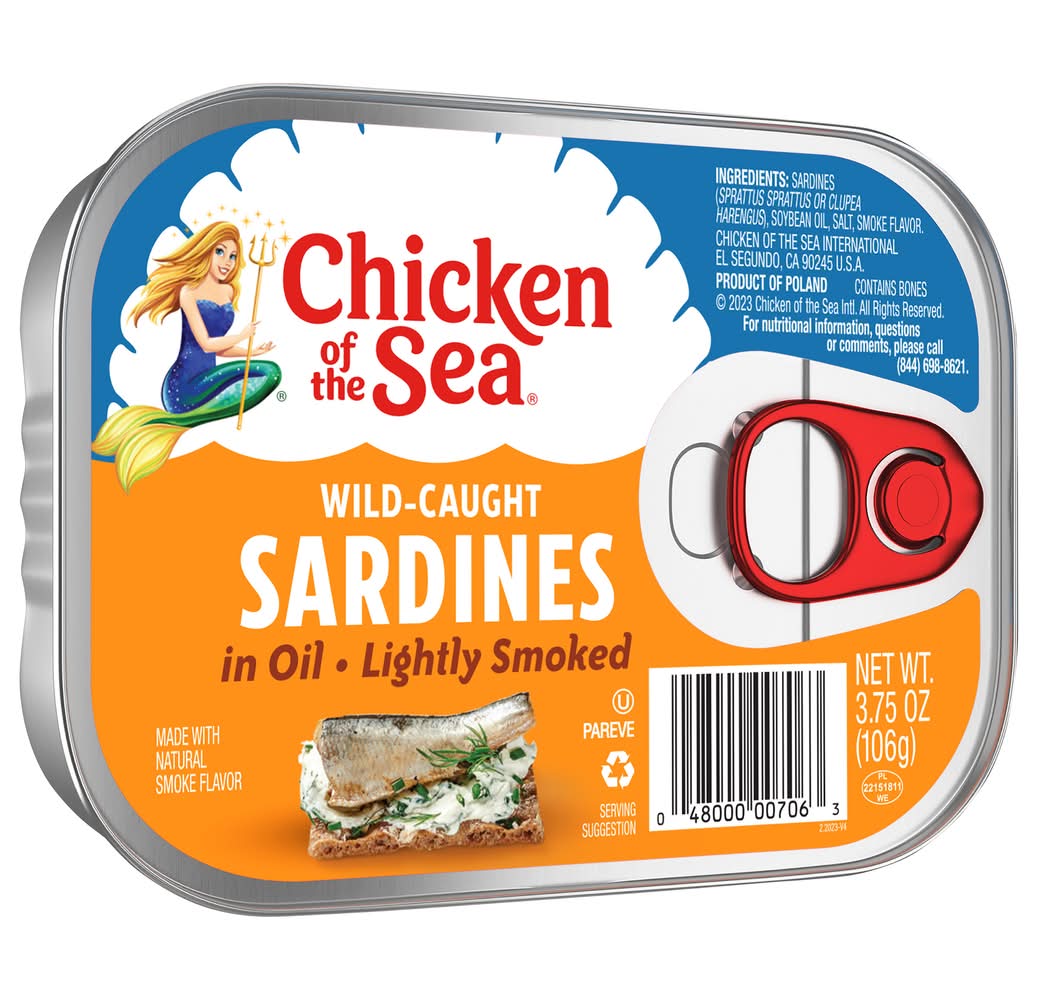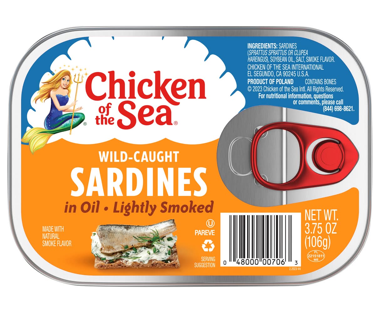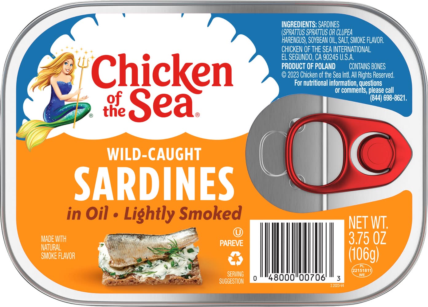 Lightly smoked sardines are rich and flavorful enough to stand on their own. Try them as a snack or appetizer! Sardines are shelf stable, so theyre great pantry staples! Each can contains delicious sardines in oil from Chicken of the Sea.PROP 65 BPA Many cans containing foods and beverages sold here have epoxy linings used to avoid microbial contamination and to extend shelf life. Lids on jars and caps on bottles may also have epoxy linings. Some of these linings can leach small amounts of bisphenol A (BPA) into the food or beverage. BPA is a chemical known to the State of California to cause harm to the female reproductive system. For more information go to: www.P65Warnings.ca.gov/BPA Chicken of the sea international, El Segundo,CA,90245,844-698-8621,www.chickenofthesea.com