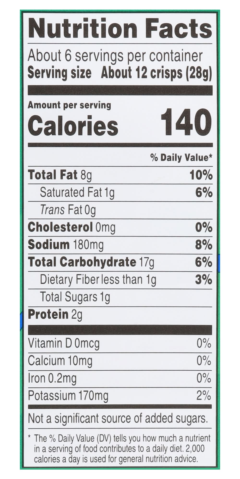 Ingredients: Dried Potatoes, Vegetable Oil (Corn and/or Sunflower Oil), Corn Flour, Potato Starch, Rice Flour, and Less than 2% of the Following: Sugar, Salt, Mono- and Diglycerides, Skim Milk, Onion Powder, Dextrose, Whey, Monosodium Glutamate, Corn Starch, Sour Cream (Cultured Cream, Skim Milk), Lactose, Maltodextrin (Made from Corn), Natural and Artificial Flavors, Soy Lecithin, Citric Acid, Malic Acid, Cheddar Cheese (Milk, Cheese Cultures, Salt, Enzymes), Corn Syrup Solids, Buttermilk, Artificial Color (Yellow 5 Lake, Blue 1, Red 40), Disodium Inosinate, and Disodium Guanylate Contains: Milk, Soybeans, Lactose