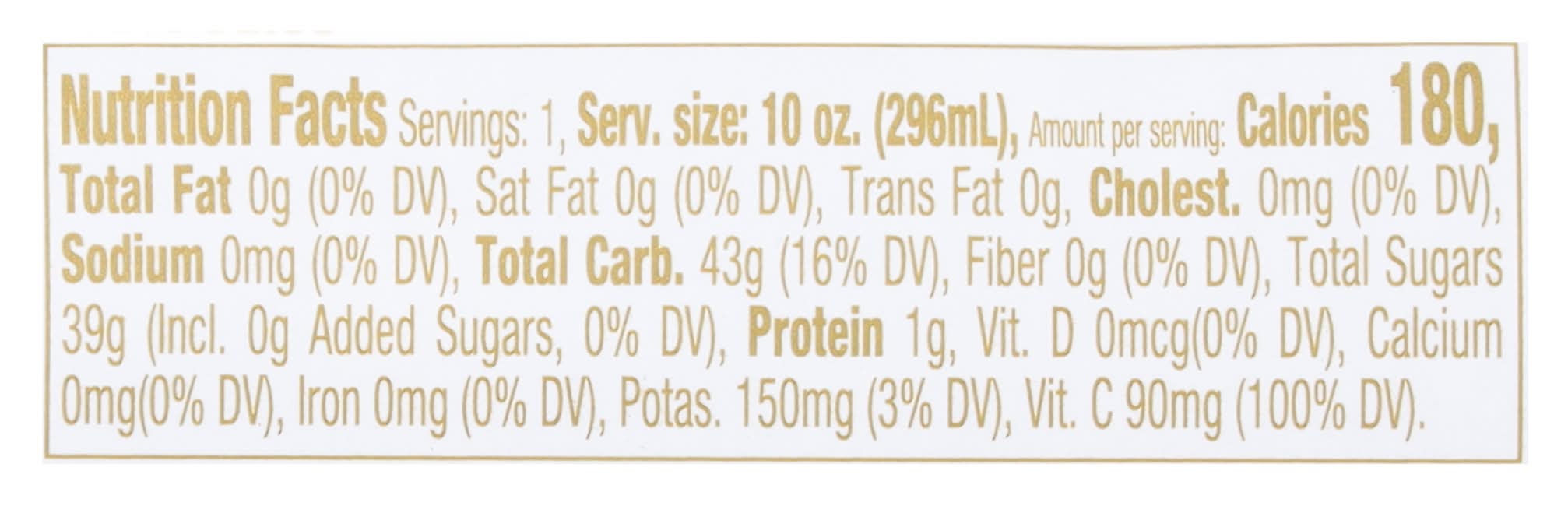 Ingredients: Pasteurized Carbonated Apple Juice, Vitamin C Added to Maintain Color