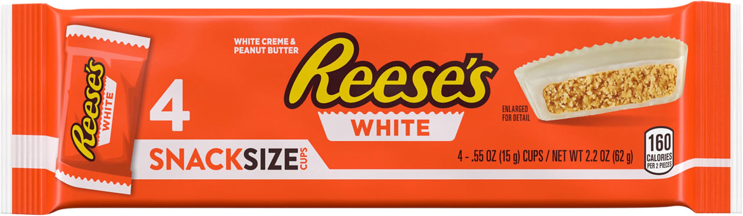 White White Creme & Peanut Butter Snack Size Cups Cups • Flavor: White creme-peanut butter • Pack size: 4 • Number of servings: 2