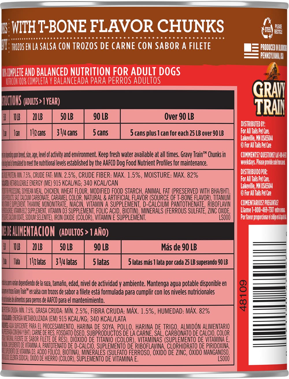 Gravy Train Chunks in Wet Dog Food, T-Bone (13.2 oz)