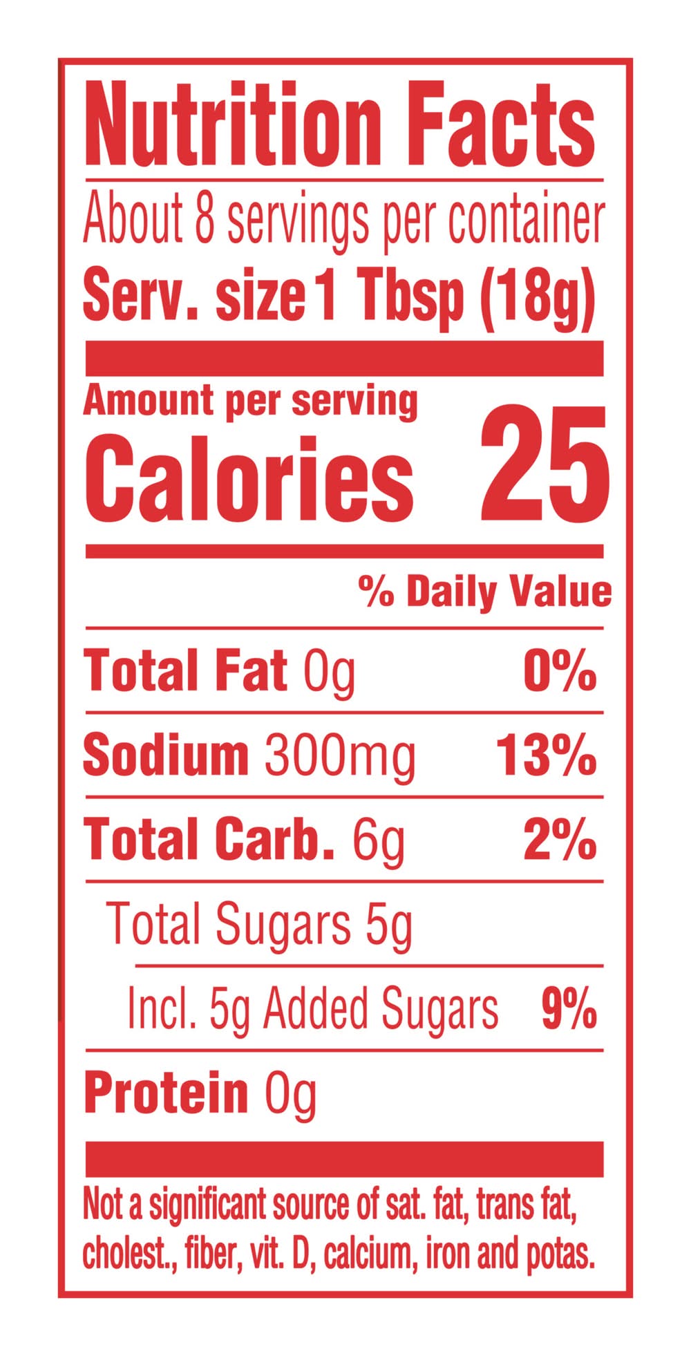 Ingredients: TOMATO PUREE (WATER, TOMATO PASTE), HIGH FRUCTOSE CORN SYRUP, VINEGAR, CORN SYRUP, SALT, RAISIN PASTE, CRUSHED ORANGE PUREE, SPICE, DRIED ONIONS, XANTHAN GUM, DRIED GARLIC, CARAMEL COLOR, POTASSIUM SORBATE (TO PRESERVE FRESHNESS), CELERY.