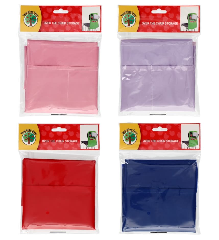 Looking for a convenient place to create some additional storage These brightly colored chair back covers contains various storage pockets in the back and that make make it easy to store supplies and other small items that you need to keep easily accessible from your seat. Ideal for kid's art tables, playrooms, classrooms, and more. • Pack size: 4 • Size: 13.75x15 in
