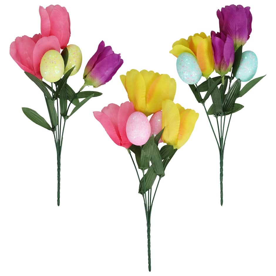 Assorted Easter-Themed Artificial Flower Bushes with Egg Accents, 5 in.
