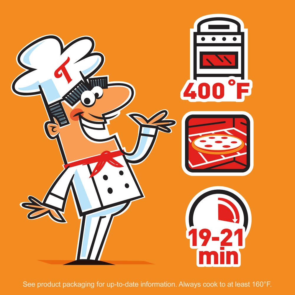 Directions for use: Baking Instructions: 1. Preheat oven to 400 degrees F. 2. Remove pizza from box and inner wrapper. 3. Place frozen pizza directly on center oven rack. 4. Cook 19-21 minutes. Pizza is done when cheese is melted and edges are golden brown. Keep frozen until ready to cook. Refrigerate or discard any unused portion. Note: Due to oven variances, cooking times may require adjustments. Caution! Product will be hot! For food safety and quality cook before eating to an internal temperature of 160 degrees F. Storage recommendation: Keep frozen.