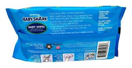 Clean up all your family's messes with the characters that your kids know and love! These quality baby wipes come printed with your child's favorite animated shark family from the popular Primal Elements Nickelodeon show Baby Shark. They come in 60-ct. packs and are infused with aloe and vitamin E to nourish and moisturize skin as well as leave behind a fresh baby scent. Great for homes, daycare centers, baby sitters, schools, and more. Clean food off faces, wipe gunk off hands, and tidy up cleaning surfaces with these Nickelodeon Pinkfong Baby Shark Baby Wipes! Pack size: 60