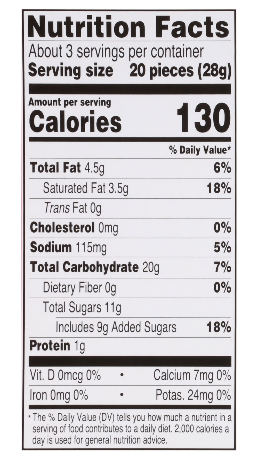 Ingredients: Milk Chocolate (Sugar, Cocoa Butter, Unsweetened Chocolate, Milk, Soy Lecithin (an Emulsifier), Salt, Natural Flavor), Heat-Treated Wheat Flour, Sugar, Palm Kernel Oil, Dark Brown Sugar, Vegetable Glycerin, Semi-Sweet Chocolate Chips (Sugar, Unsweetened Chocolate, Cocoa Butter Dextrose, Soy Lecithin (an Emulsifier), Milkfat), Tapioca Syrup, Natural and Artificial Flavors, Molasses, Confectioner's Glaze, Salt, Xanthan Gum, to Maintain Freshness [Potassium Sorbate, Rosemary Extract (Canola Oil, Natural Flavor, Natural Mixed Tocopherols, Ascorbic Acid, Sunflower Oil, Citric Acid, Sunflower Lecithin)] Contains: Milk, Soybeans, Wheat, Peanuts, Tree Nuts, Milk, Eggs, Wheat, Soybeans